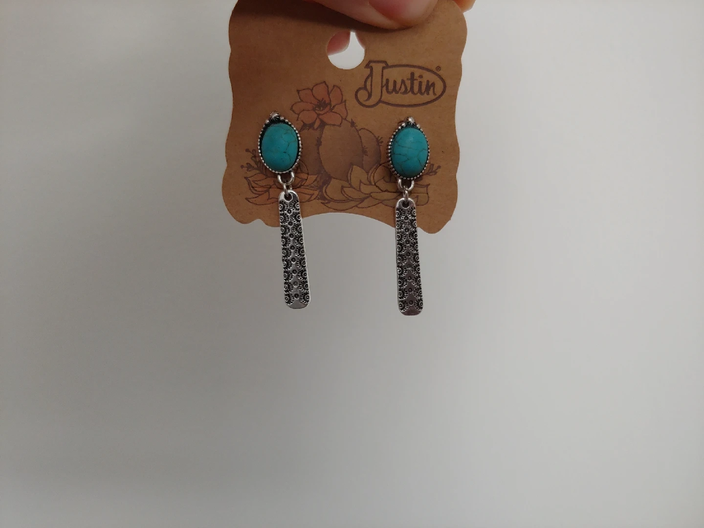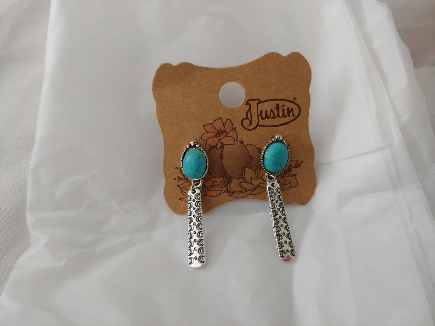 These Justin earrings are brand new and ready to add a pop of colour to your outfit! They feature a silver-tone finish with a turquoise stone accent.