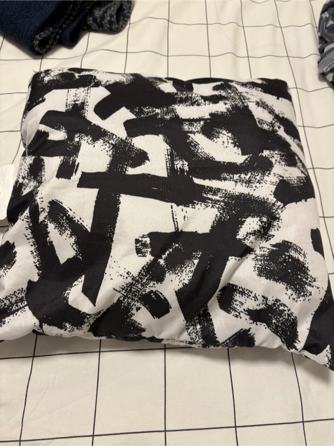 This is an IKEA TURILL cushion cover. Features a black and white abstract brushstroke pattern. Made in Mexico.