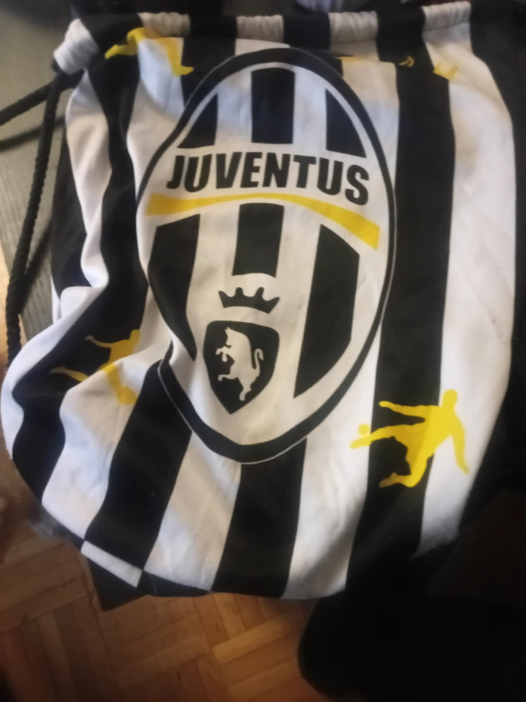 58Black and white striped drawstring bag. Features the Juventus crest and logo. Drawstring closure. Small size.
