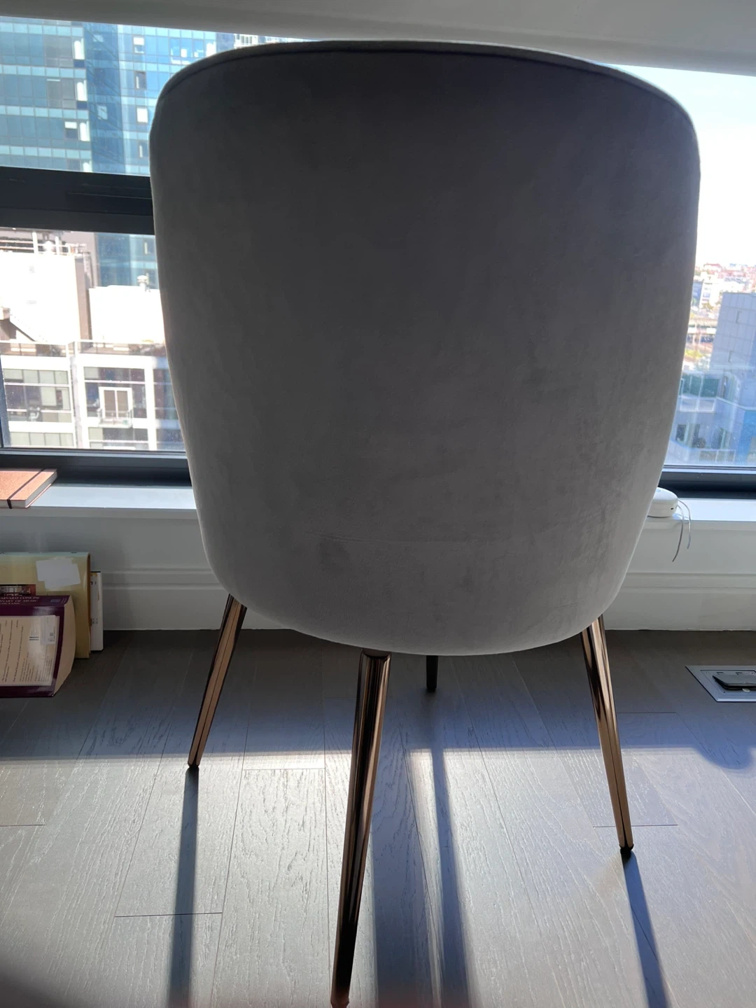 Selling a mid-century swivel office chair in pewter performance velvet! It has metal legs and is in great condition.