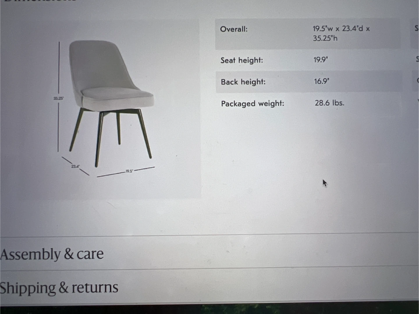 - Overall: 19.5"w x 23.4"d x 35.25"h
