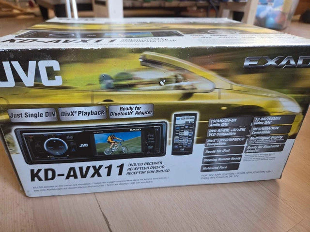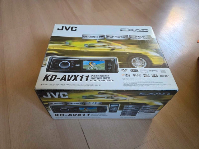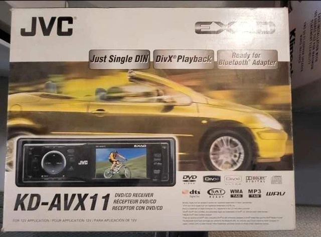 I'm selling a used JVC KD-AVX11 DVD/CD receiver with Bluetooth adapter for your car's entertainment system. This single DIN unit offers DivX playback for your favourite movies on the go. Key Features: * DVD/CD Receiver * DivX Playback * Single DIN * Bluetooth Adapter Ready Based on similar items listed on Kijiji, I'm pricing this unit at $75. If you're reading this, the receiver is still available – ready to bring some tunes to your drives!