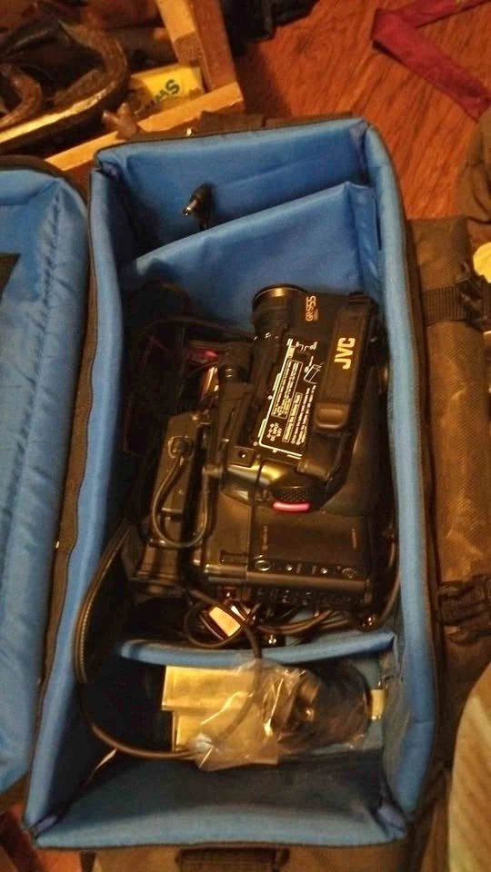 80Camera and accessories are in good condition. A number of unopened tapes to use. Includes a few audio/video cables, a battery, and 1 part of a 2 part power cable. I charged the battery but I don't think it hold a very large charge anymore.