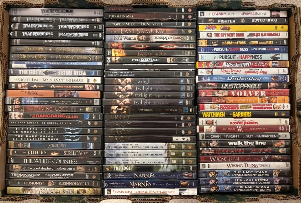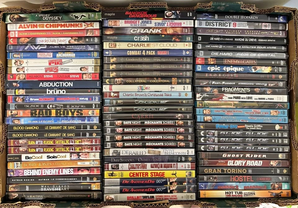 Selling a large collection of well-maintained DVDs, VHS tapes, and Blu-rays from our personal collection. We have a wide variety of genres including Comedy, Action, Drama, Horror, Sci-Fi, Family, Kids, Franchise Series, and TV Series. All movies are in great condition with no playback issues.