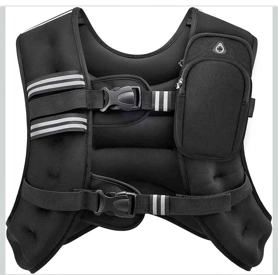 Brand new 30lb adjustable weighted vest for your workouts. Has buckle straps for snug fit on different body types. Comes with a convenient pocket to hold your phone or keys. Made with skin-friendly fabric and upgraded iron sand filling for even weight distribution.