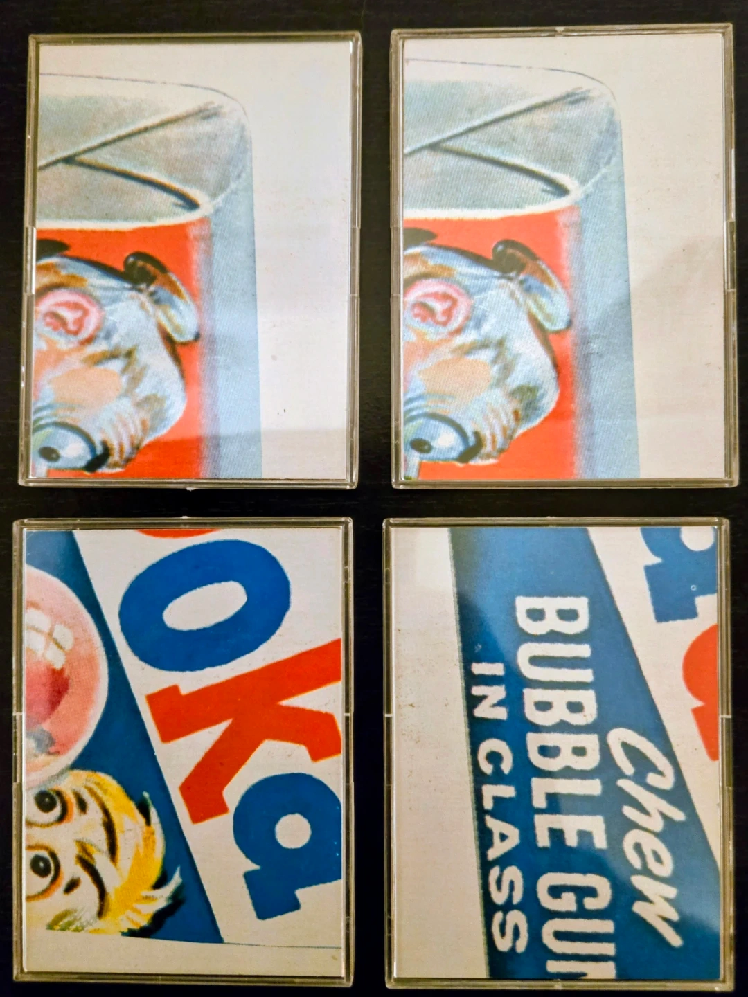 For Sale is A Rare 4 Card High Grade Lot of The 1973 Original First Edition Checklist Cards. These are the very Rare Canadian Release Featuring Bilingual Text. The Backs of The Cards are from the Iconic "Gadzooka Gum" Puzzle. This Lot includes 4 Distinct Pieces of the 9 card puzzle. All Checklists are Unmarked, Very Rare Clean Condition. Square Corners, Clean Surface with no creasing or staining. Straight and Clean edges.