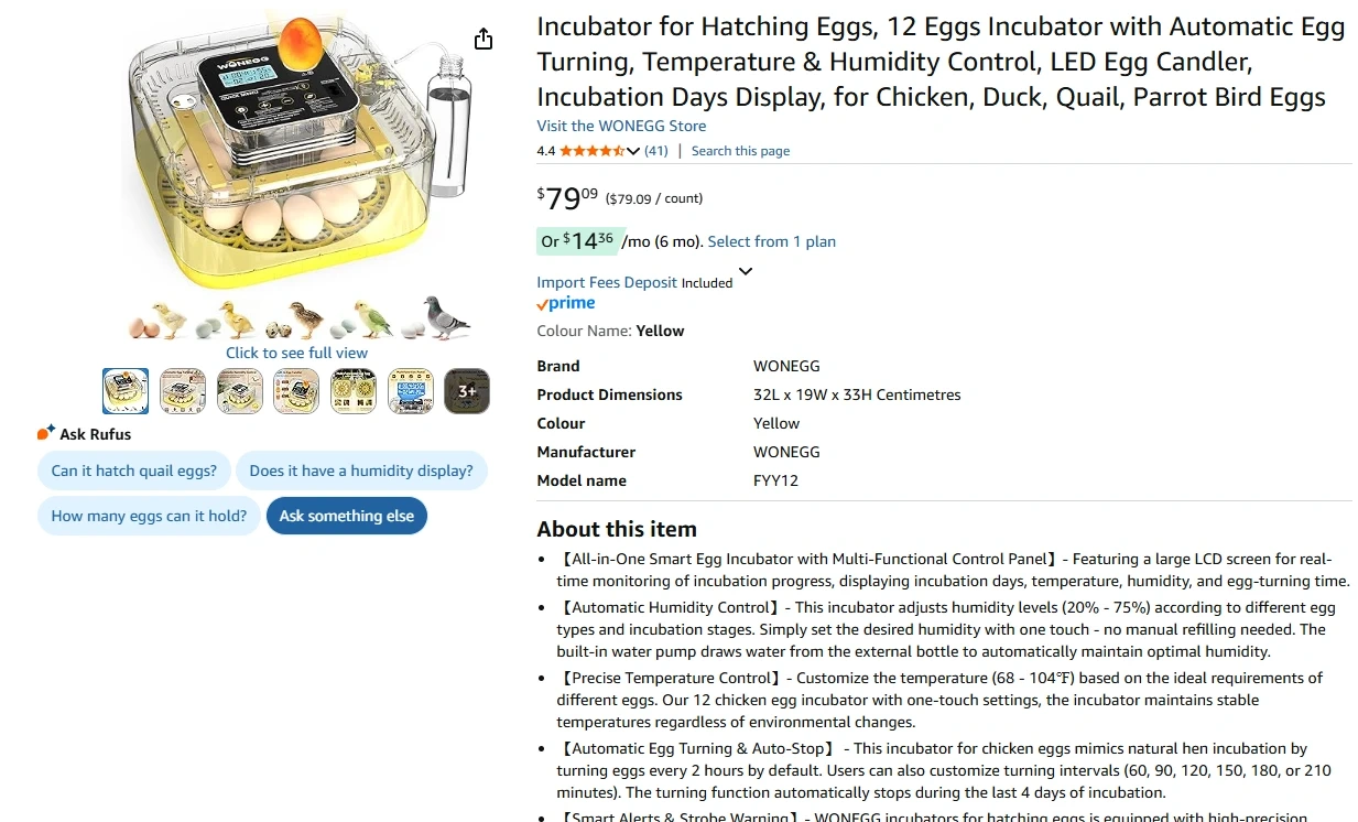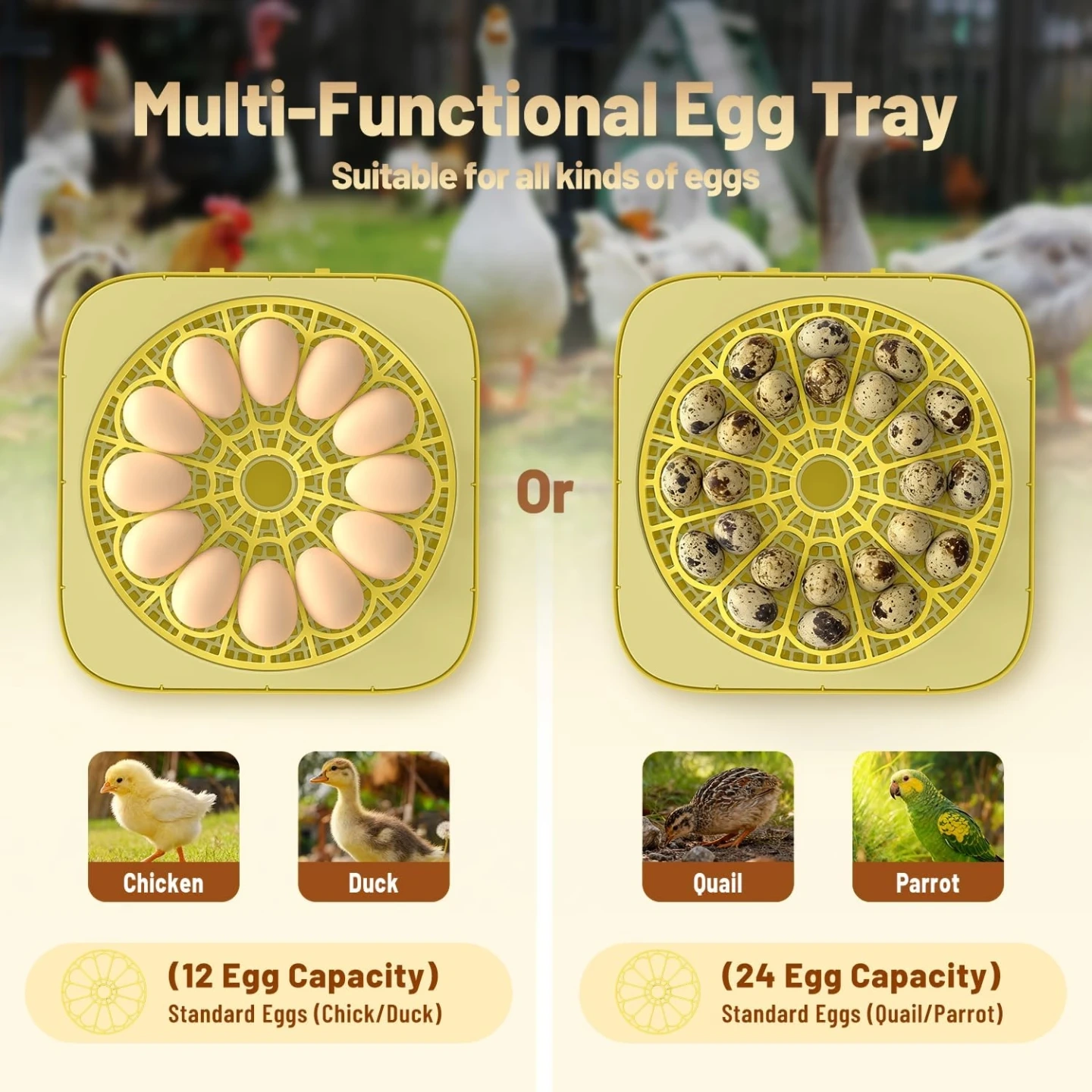 【Precise Temperature Control】- Customize the temperature (68 - 104℉) based on the ideal requirements of different eggs. Our 12 chicken egg incubator with one-touch settings, the incubator maintains stable temperatures regardless of environmental changes.