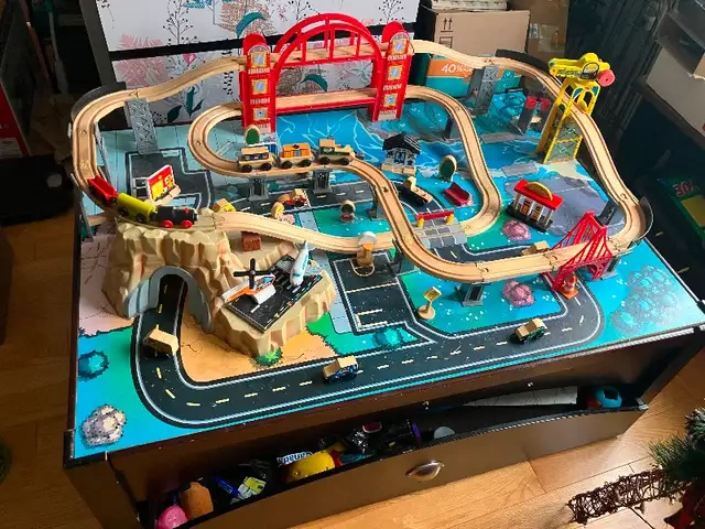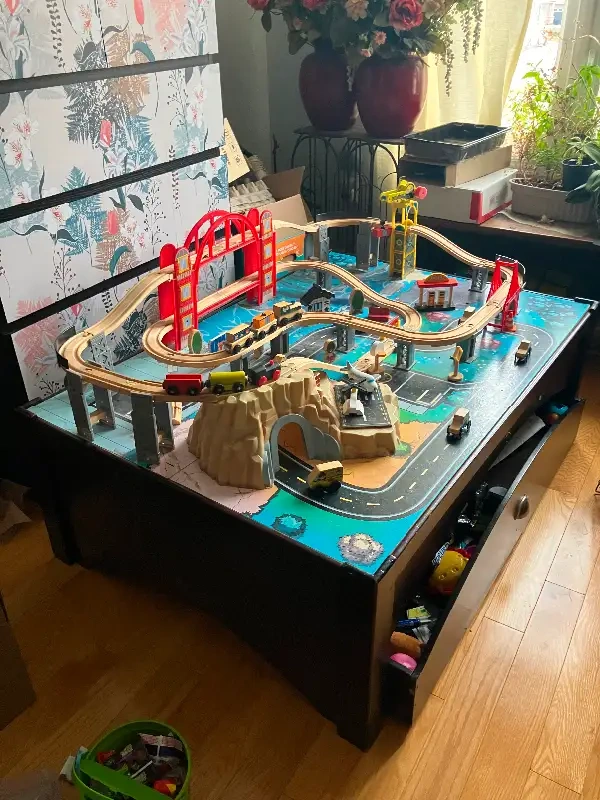 Kids train table with storage