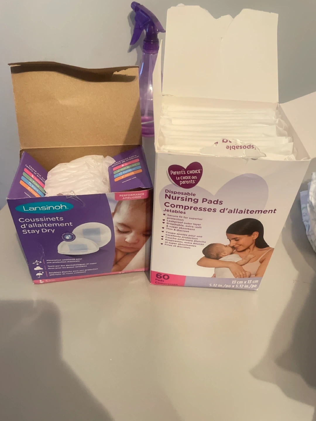 Lansinoh Stay Dry nursing pads. Parent's Choice disposable nursing pads, 60 count. These pads offer a secure fit and superior protection. They are breathable, extra-soft, and super absorbent. Thin and discreet for everyday wear.