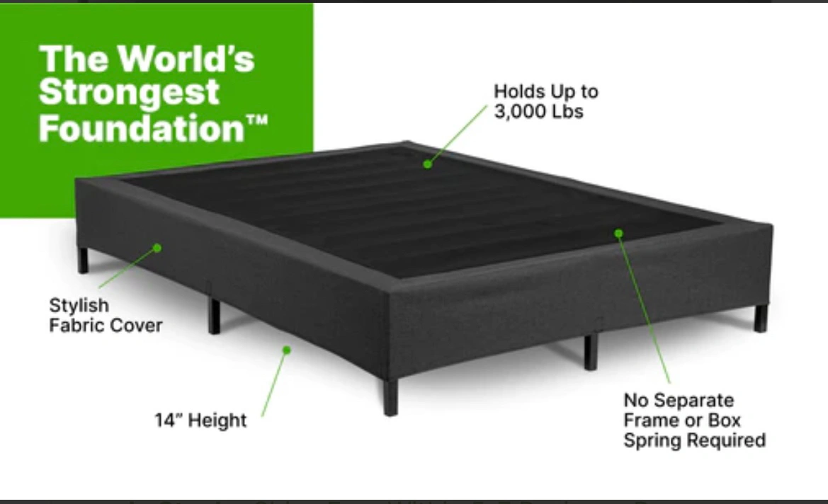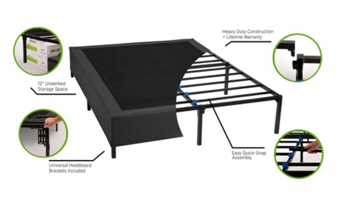 • 14" total height, with a generous 12" under-bed clearance for storage