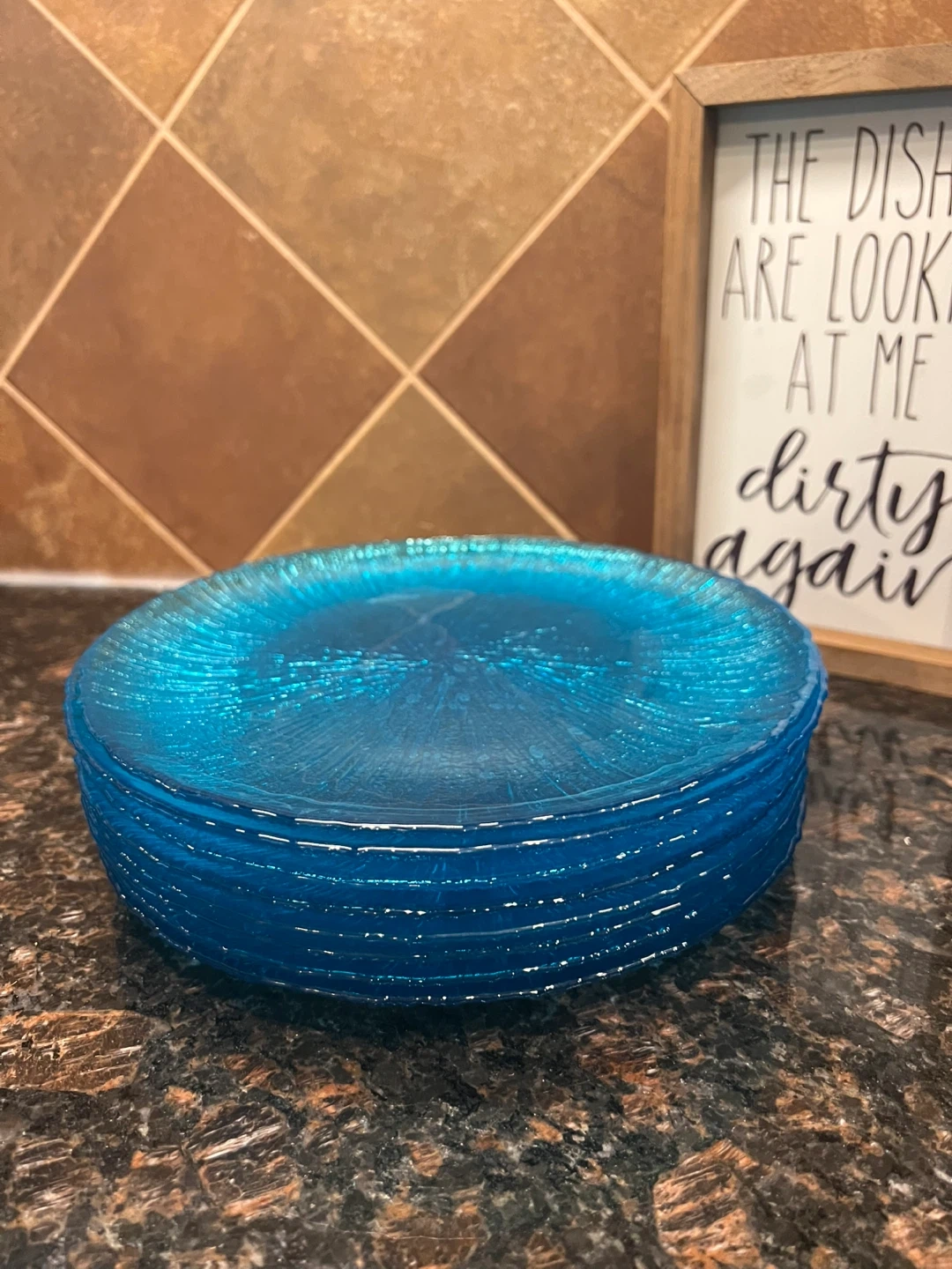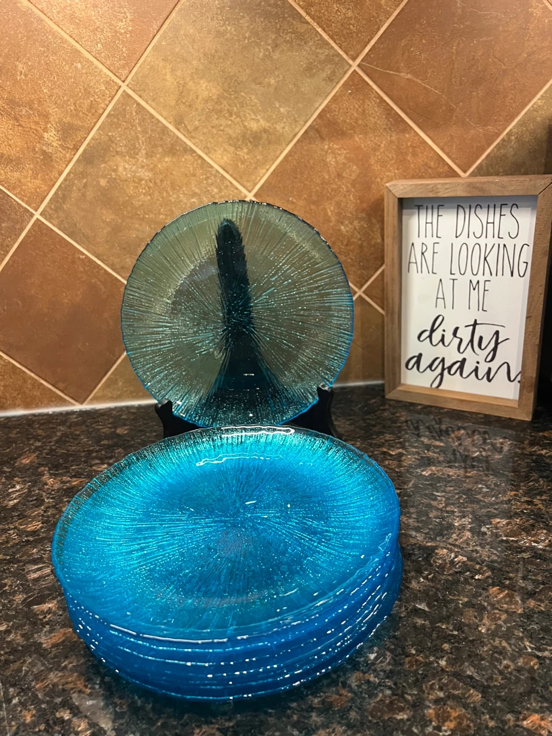 Teal Textured Glass Plates
