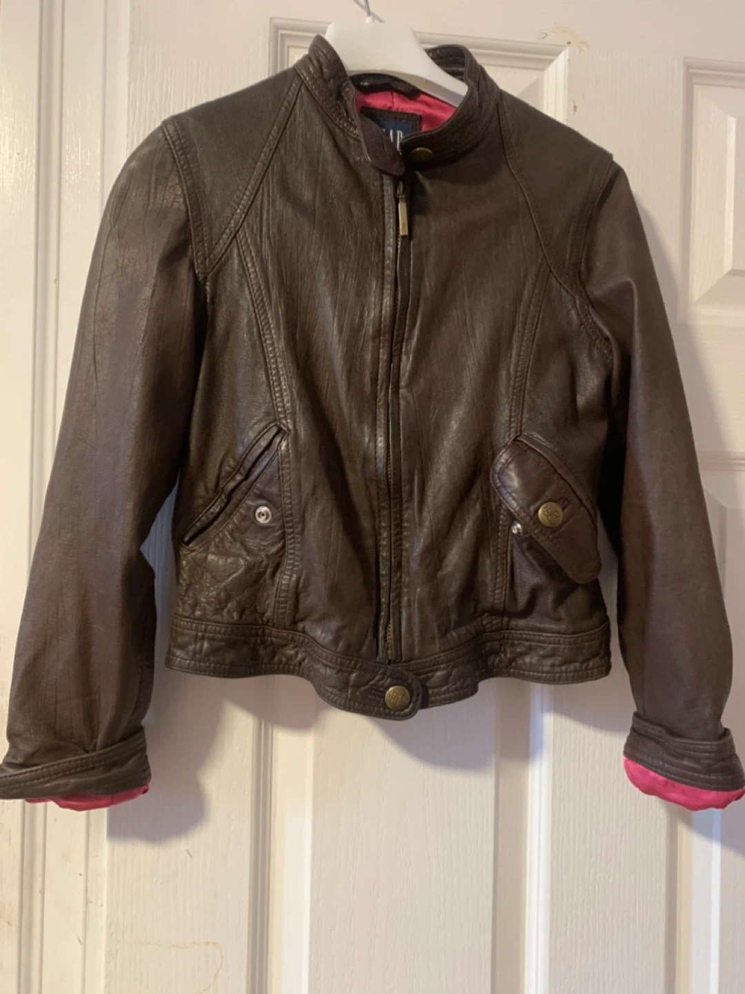 Here's a cute GAP Kids leather jacket in a lovely brown colour! It's a size S (6-8) and would be perfect for keeping your little one warm and stylish. The jacket is in great condition.