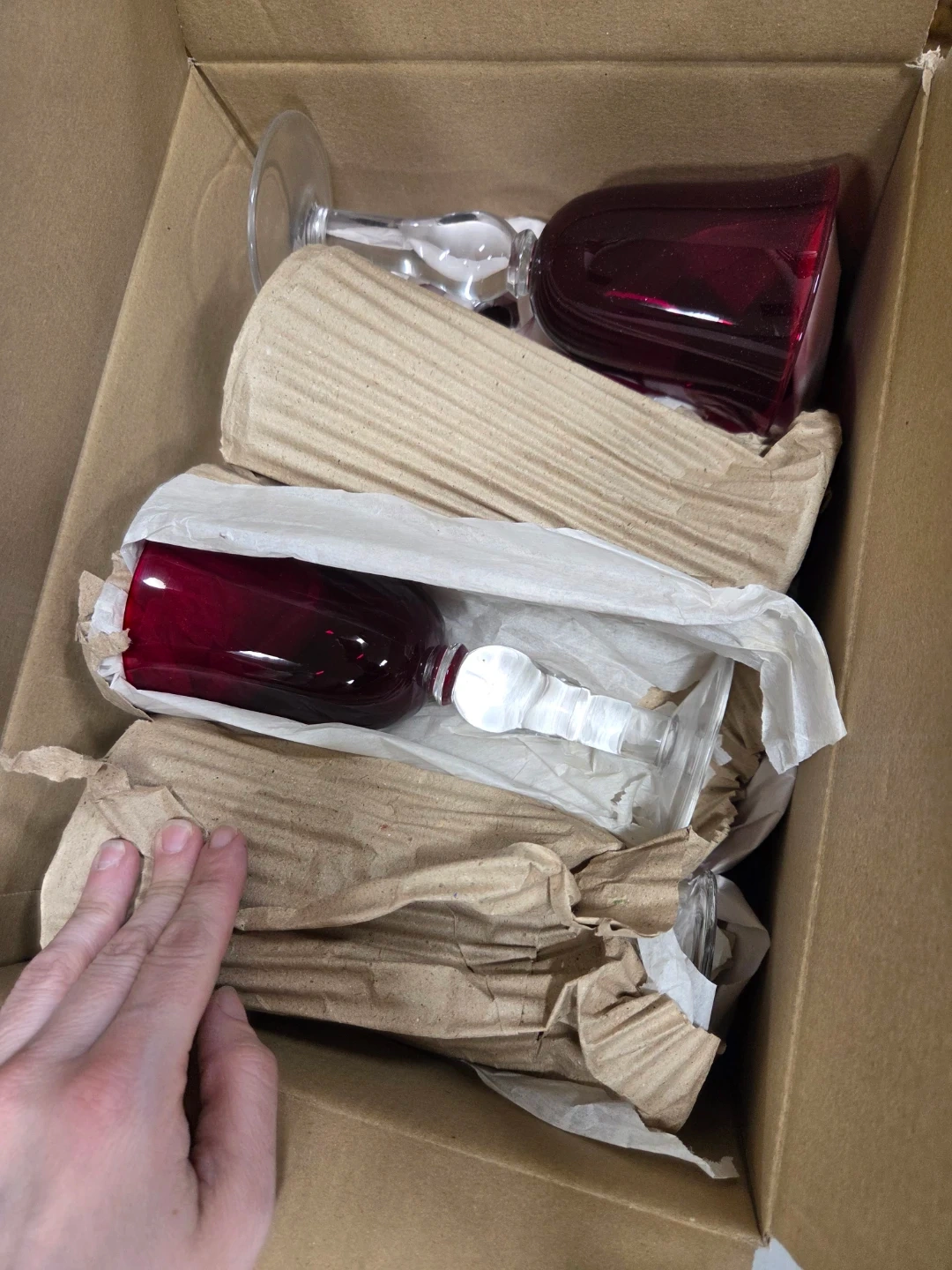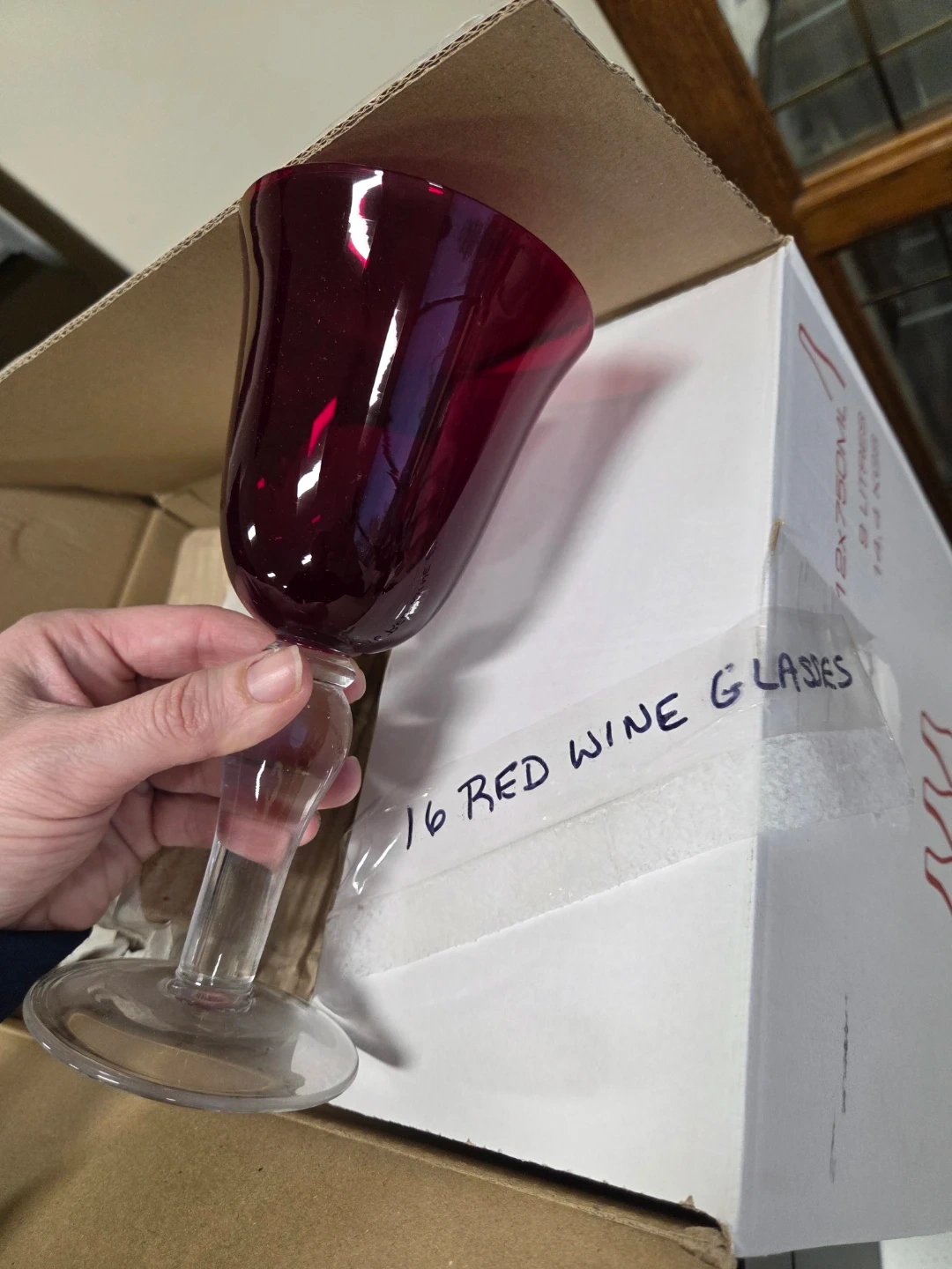 This is a set of 16 red wine glasses from The glasses are made of glass and have a deep red colour. They're packaged individually for safe transport. . These glasses are ideal for entertaining or everyday use.