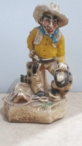 Rare Vintage Ceramic Cowboy Villain Statue Sculpture