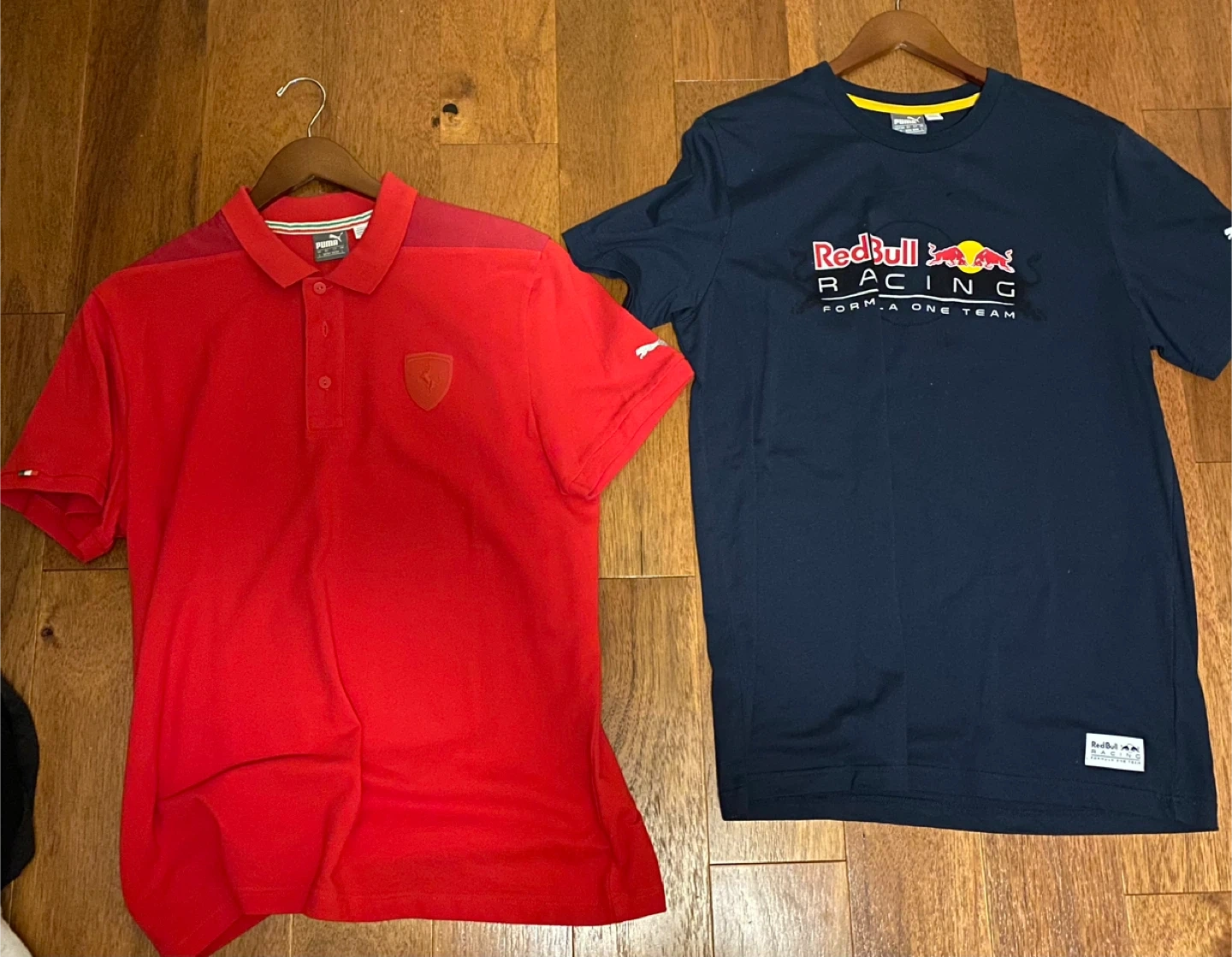 All brand new never worn, 100% authentic Puma F1 racing shirts. Mercedes, Red Bull, Ferrari and BMW