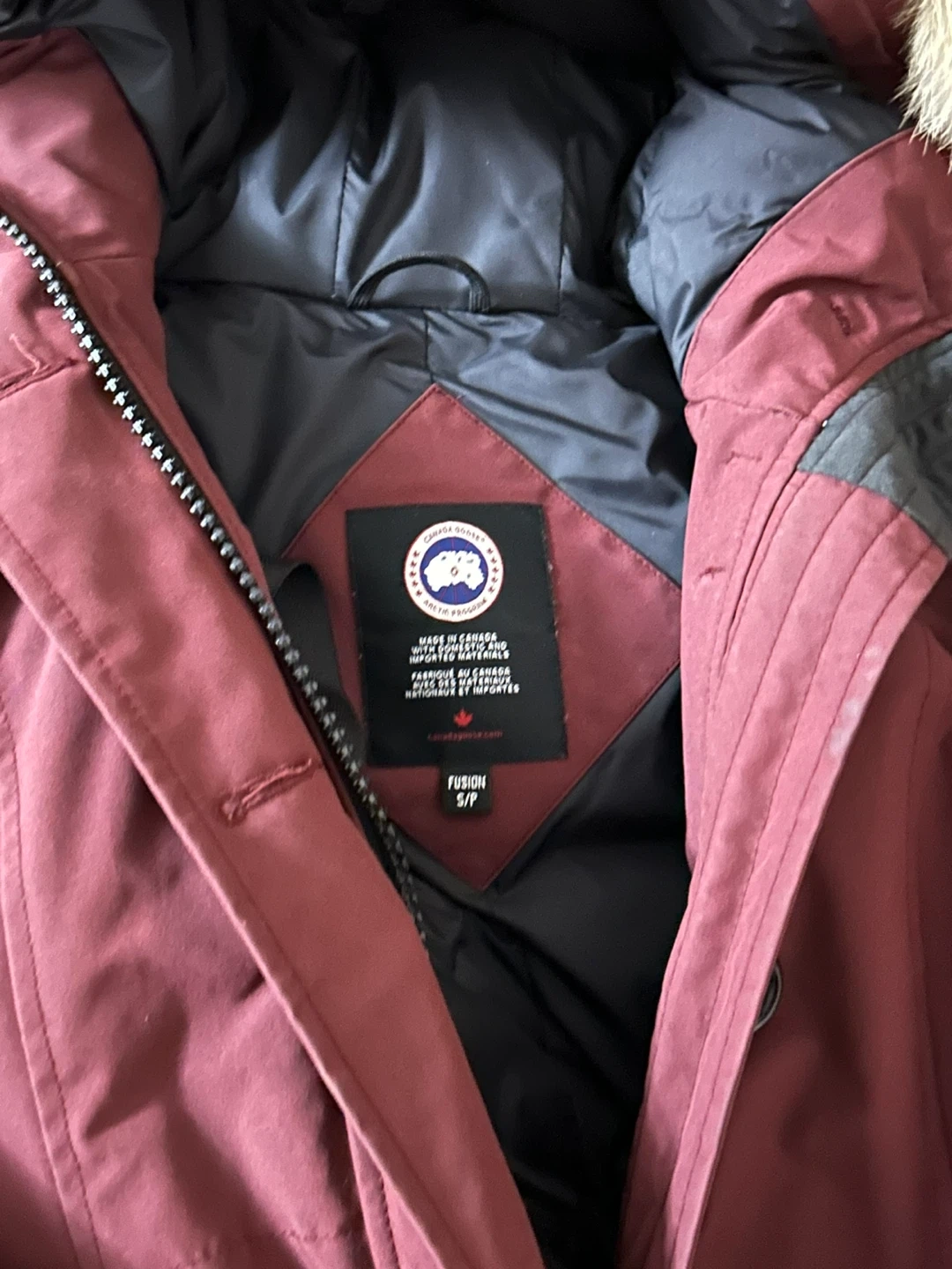 Selling a Canada Goose parka in size small (Fusion Fit). It's a beautiful burgundy colour and in great condition. Perfect for staying warm this winter!