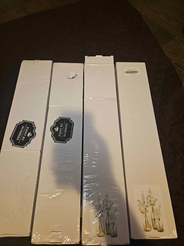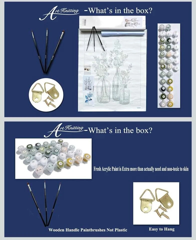 Brand new paint by number kit for adults, beginners, students, and kids. Features 'Flowers in The Bottles' design (16x20 inches). Great for room decor. Perfect for Thanksgiving, Christmas, or New Year gifts. I have 4 sets available, each for $10. Comes from a pet-free and smoke-free home.