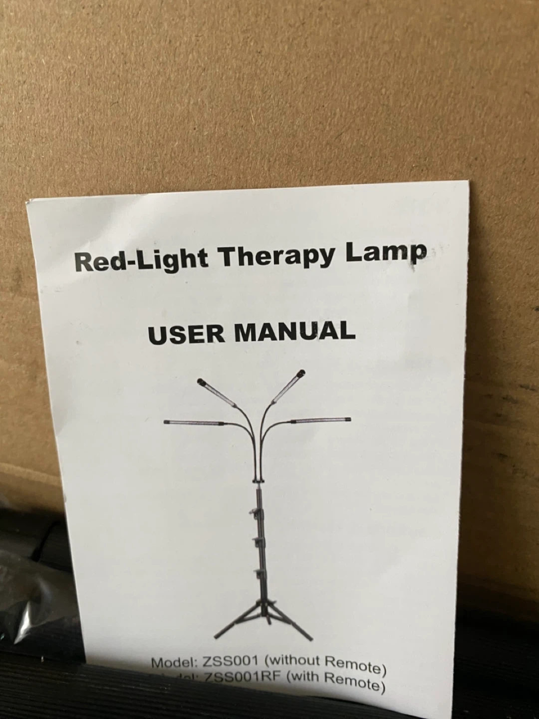 Selling a red-light therapy lamp, comes with a remote and user manual. The lamp has a timer function with settings and also has brightness controls. It also comes with sunglasses to protect your eyes while using it