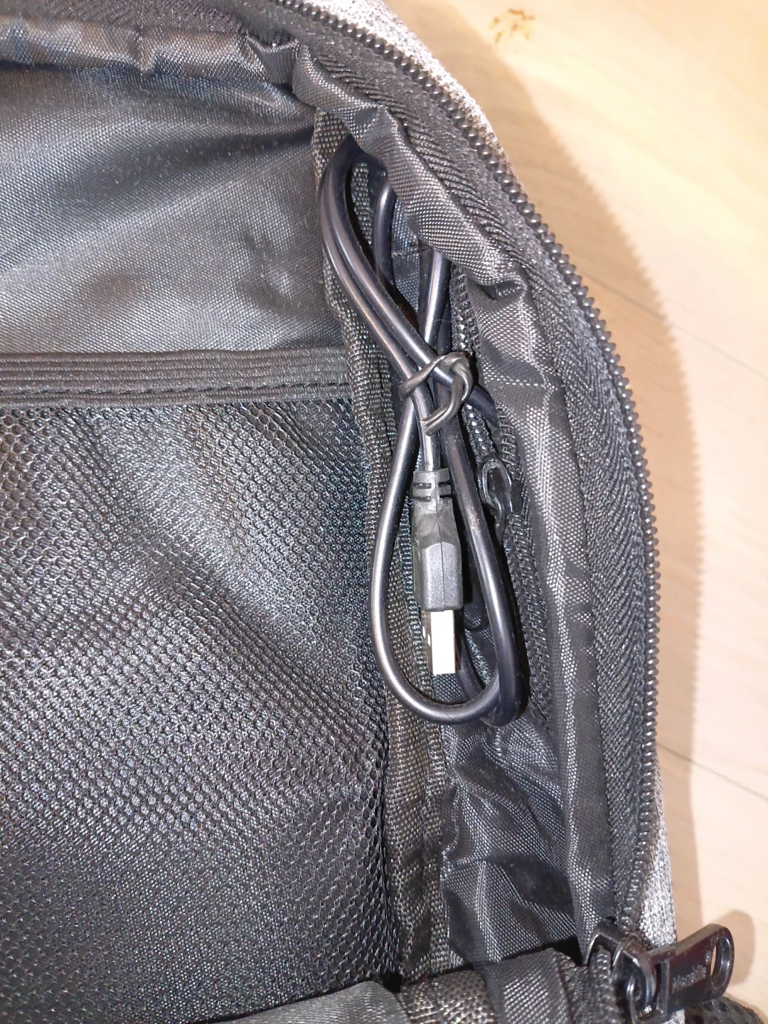 It includes a built-in USB charging port for convenience on the go. The durable fabric construction ensures it can handle daily use.