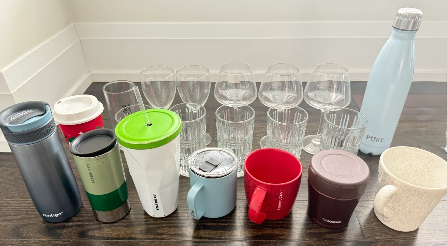 This lot includes various kitchen items. It features a digital kitchen scale, a large chef's knife, a bread knife, a spatula, a can opener, and a utensil holder. Also included is a bamboo cutlery organizer. Can be sold separately or as a bundle please DM for price.