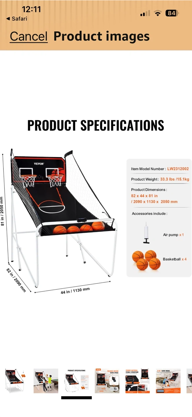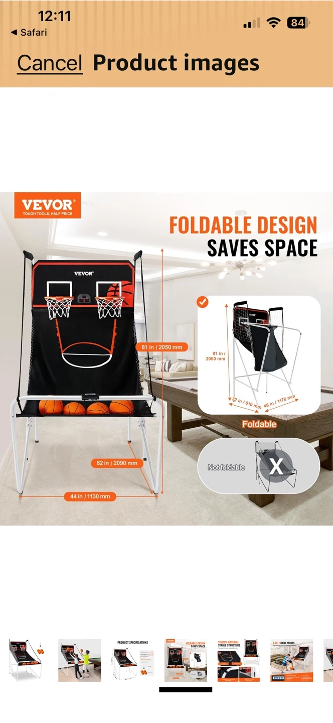 This electronic basketball game features a foldable design for easy storage and portability. It comes with multiple basketballs and an electronic scorer to keep track of your game. The game offers a fun arcade experience at home!