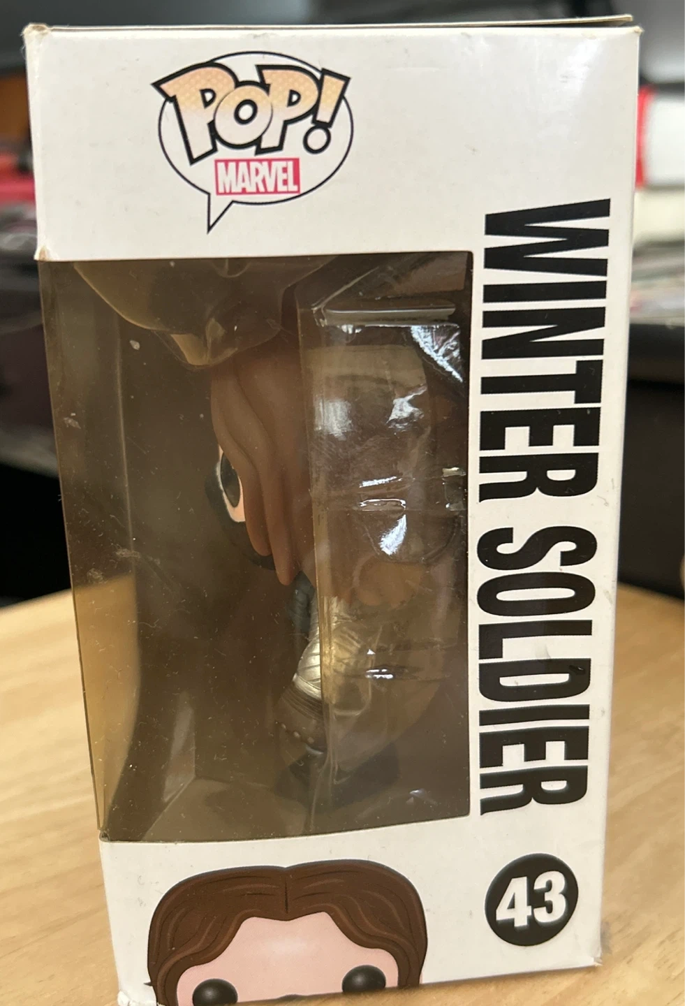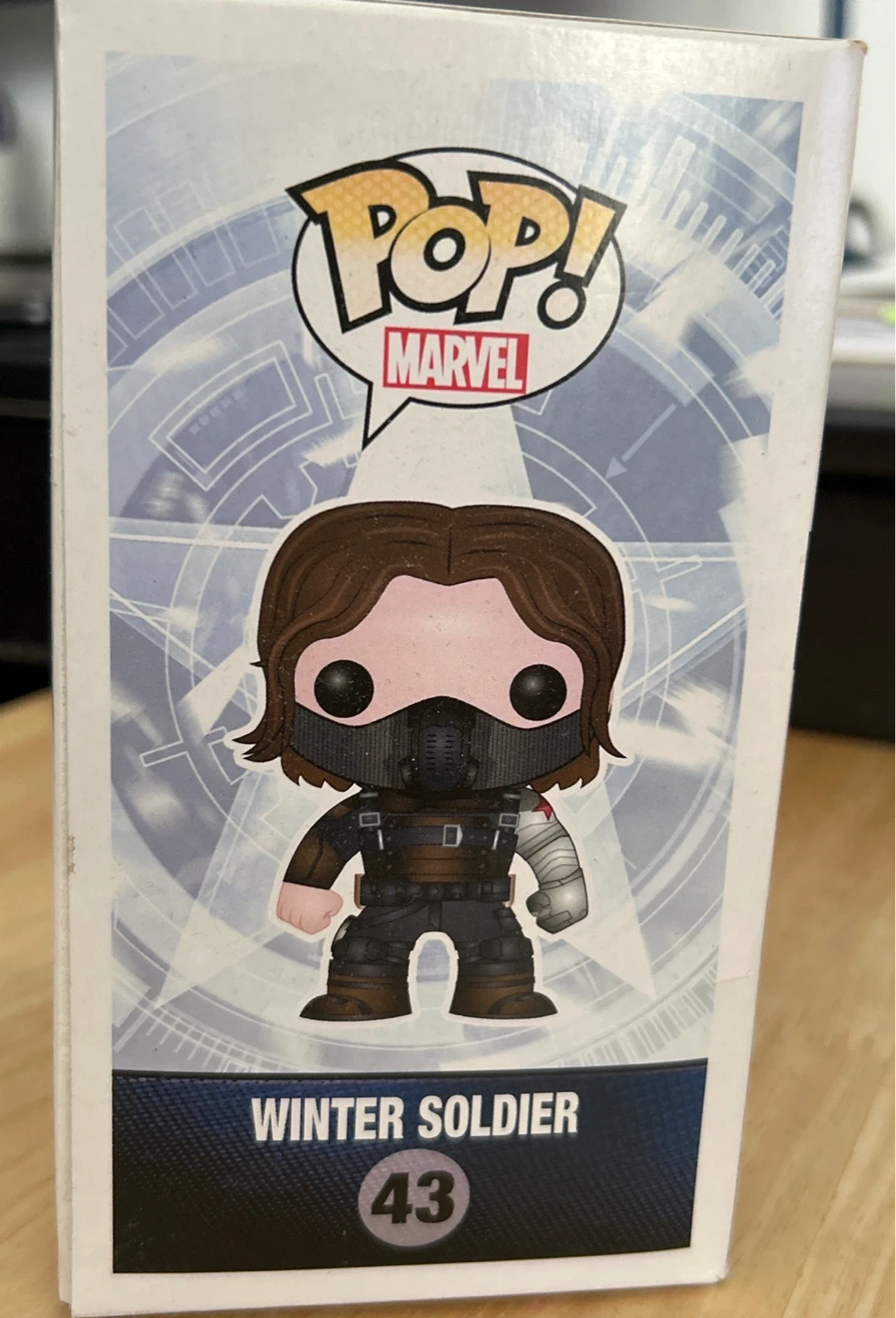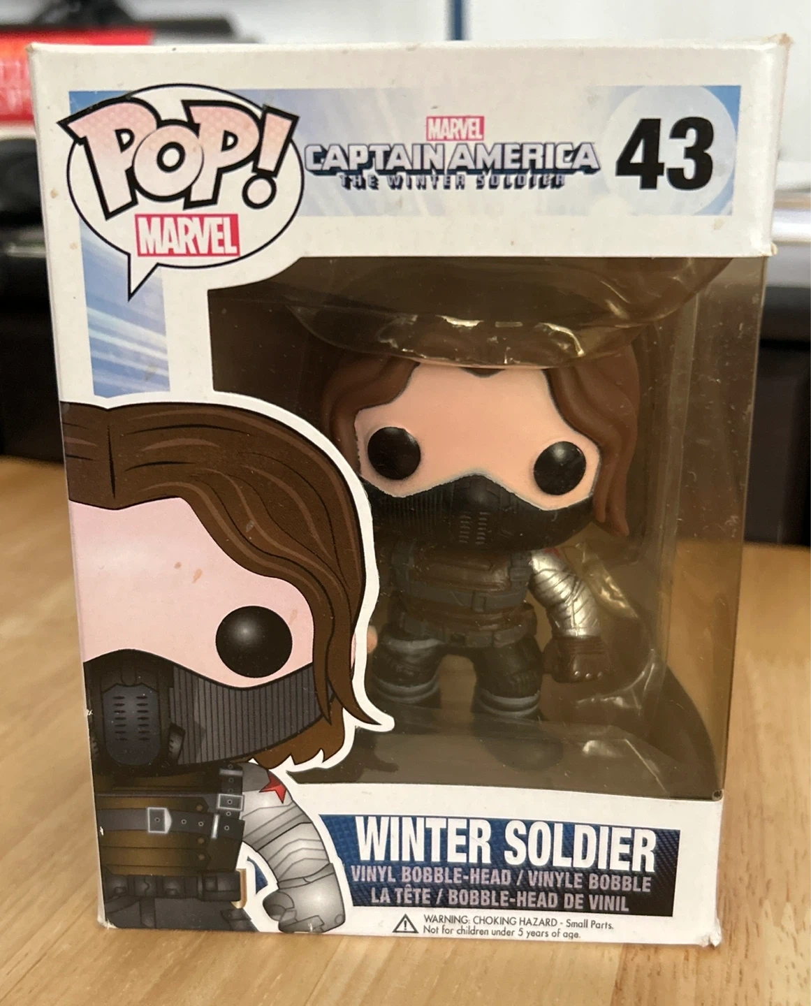 This is a Funko Pop! vinyl bobblehead figure of the Winter Soldier from Marvel's Captain America: The Winter Soldier. It's part of the Pop! Marvel series and is number 43. The item is in its original box.