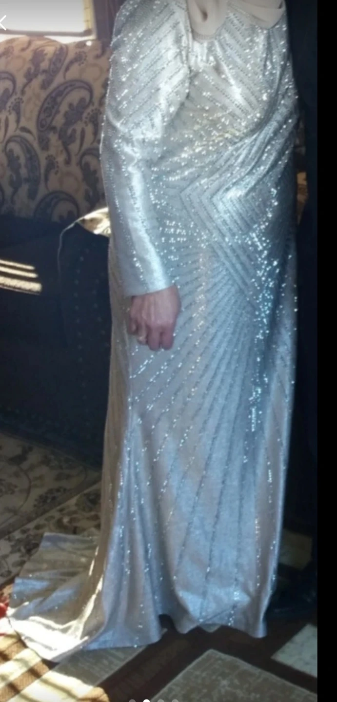 This stunning Alica maxi dress is covered in sparkling embellishments. It features long sleeves and a floor-length silhouette, perfect for a special occasion. Size is 50 EU, 48 EU, UK 22.