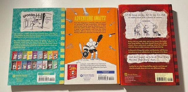 Selling a bundle of Diary of a Wimpy Kid books by Jeff Kinney, perfect for younger readers, siblings, or for a bit of nostalgia. Includes: Diary of a Wimpy Kid (original red hardcover book 1), Diary of a Wimpy Kid: No Brainer (book 18), and Rowley Jefferson’s Awesome Friendly Adventure. All books are in good overall condition with no missing pages.