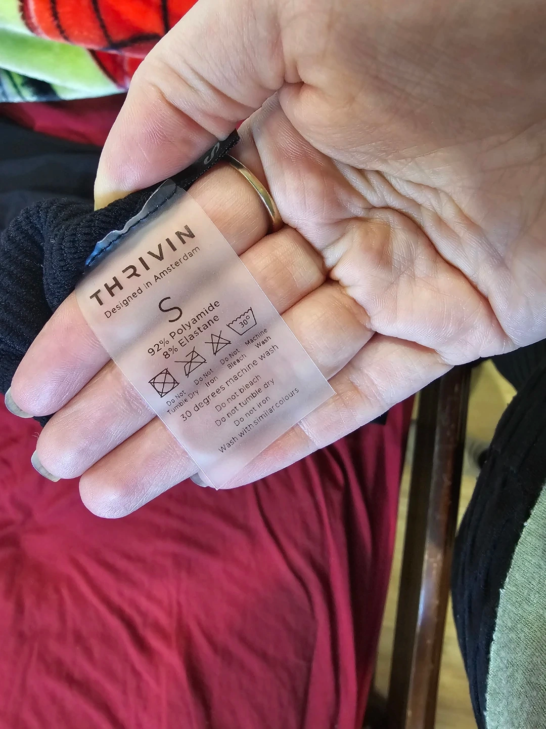 VIRAL Black Thrivin leggings designed in Amsterdam. Made from 92% Polyamide and 8% Elastane. Size is small.