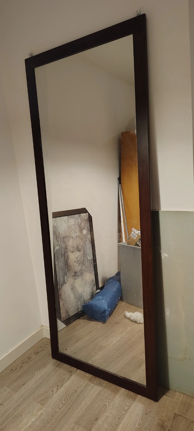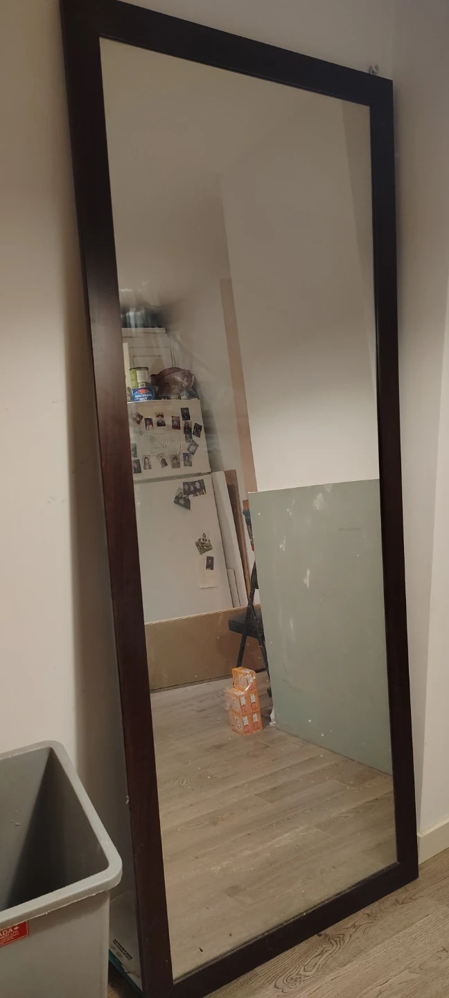 Great set of 2 sliding mirror closet panels. Got these 2 years ago for my closet but never installed them, just been collecting dust. Each panel is 31 x 78 inches with a dark brown frame. Colonial Elegance brand.