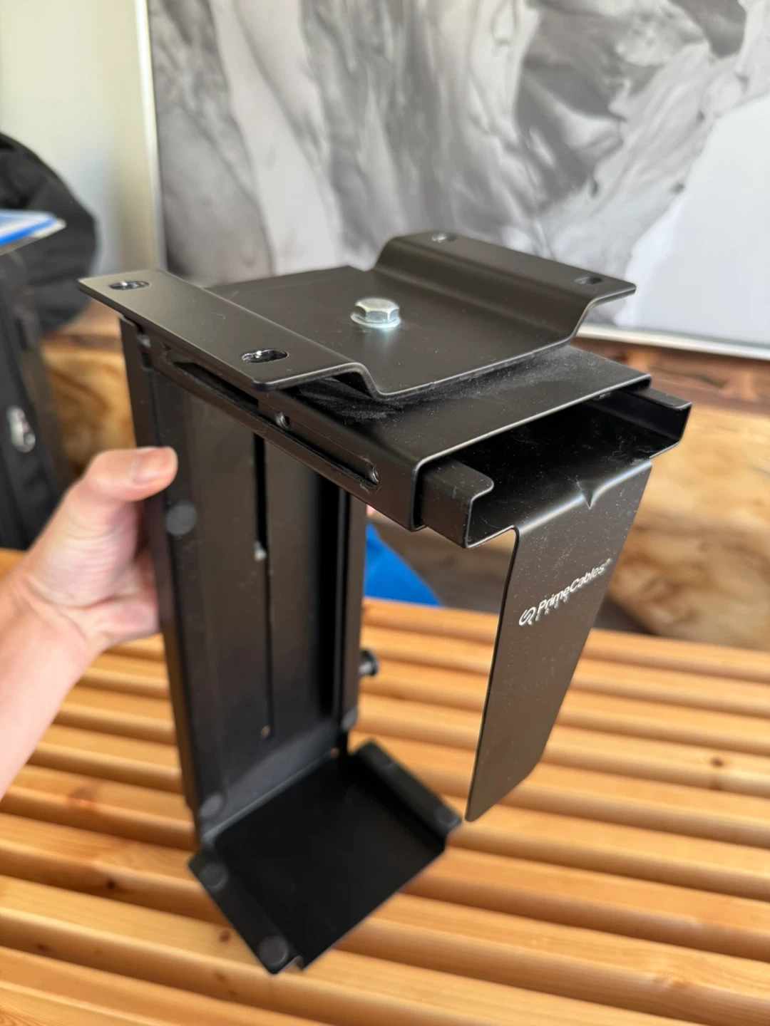 Selling a Prime Cables under-desk CPU holder! It's in great shape and ready to help declutter your workspace. This handy holder mounts under your desk to keep your computer tower off the floor, protecting it from dust and accidental bumps. It's a simple and effective way to organize your home or office setup.