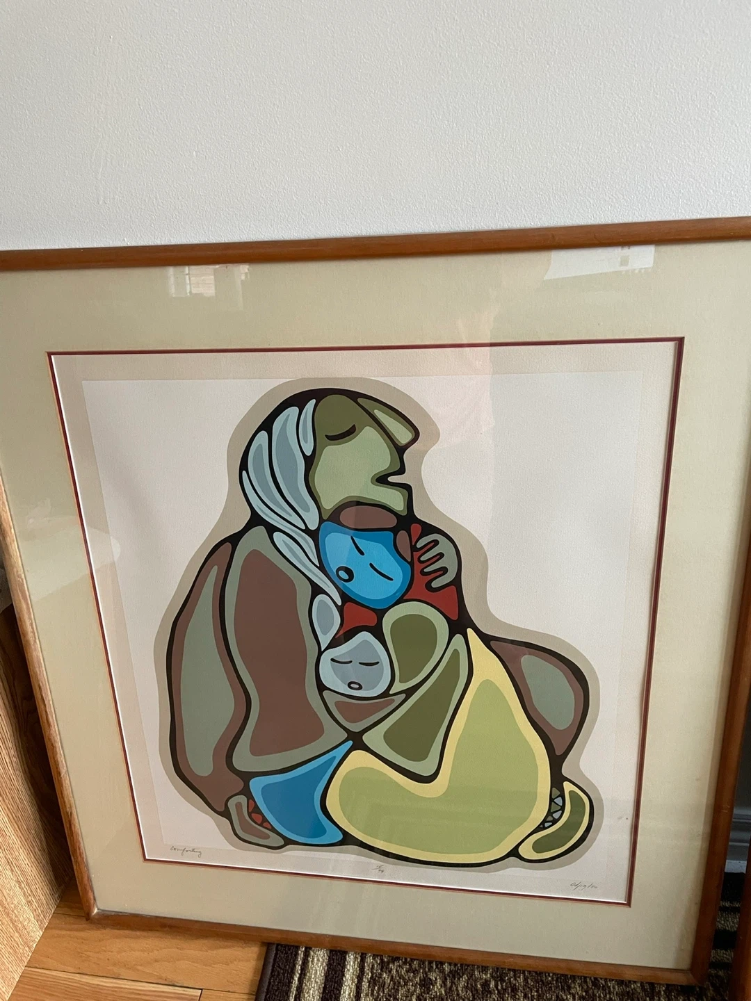 This is a framed offset lithograph print by Daphne Odjig, titled "Homage to Grandfather". It's part of an edition limited to 99 prints plus 10 artist's proofs. The print is signed by the artist.