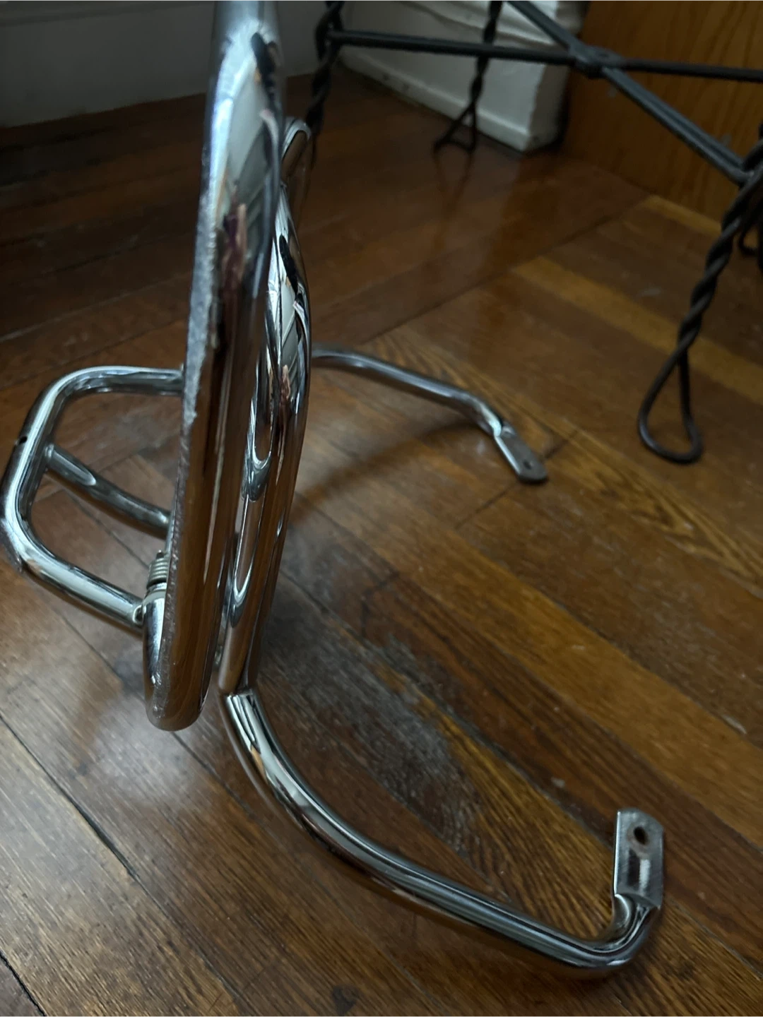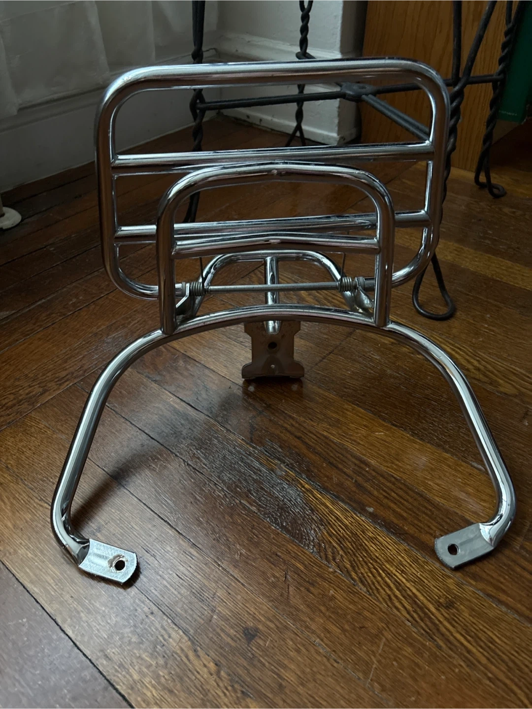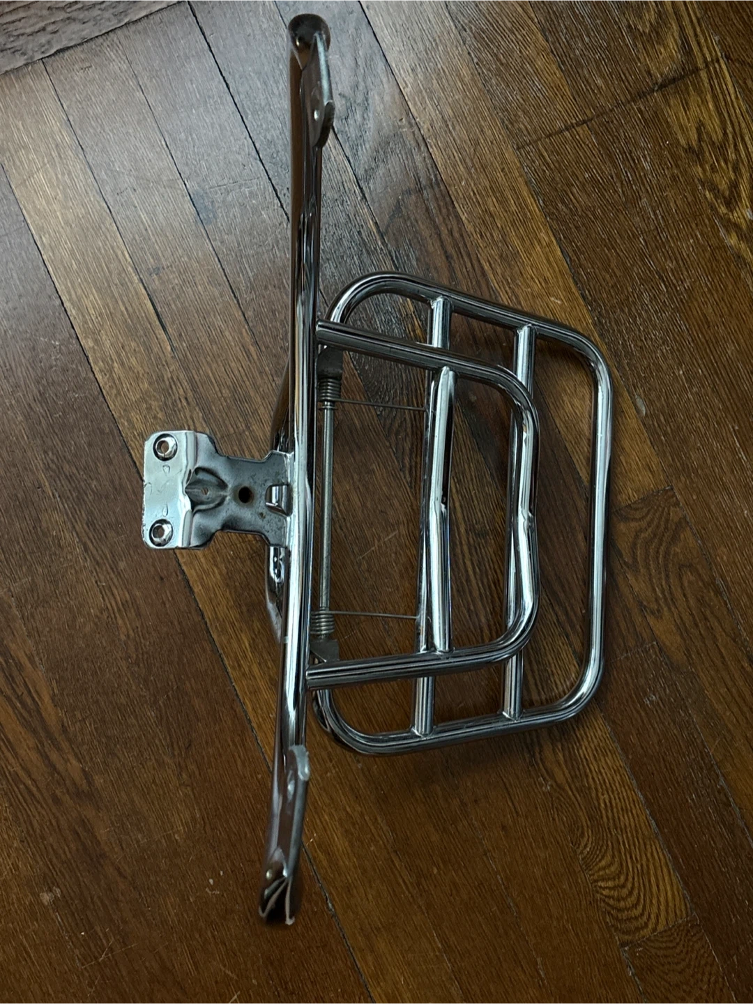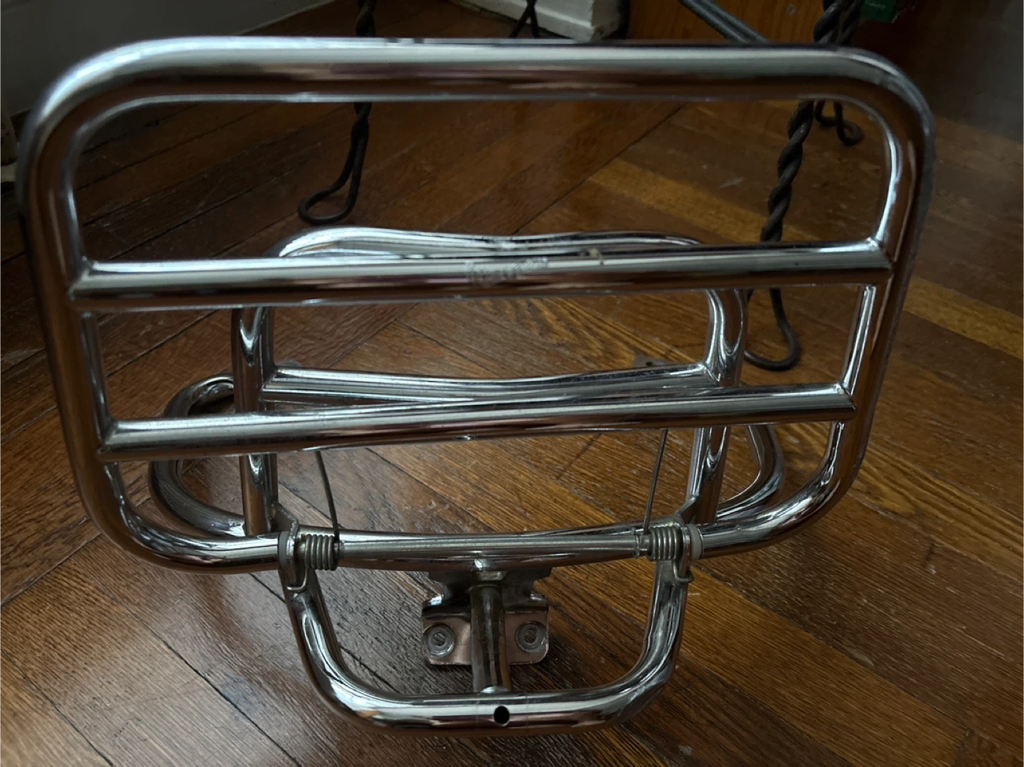 Selling a VESPA original chrome luggage rack, perfect for your Vespa! It has some visible wear and scratches, as shown in the photos. Still sturdy and functional!