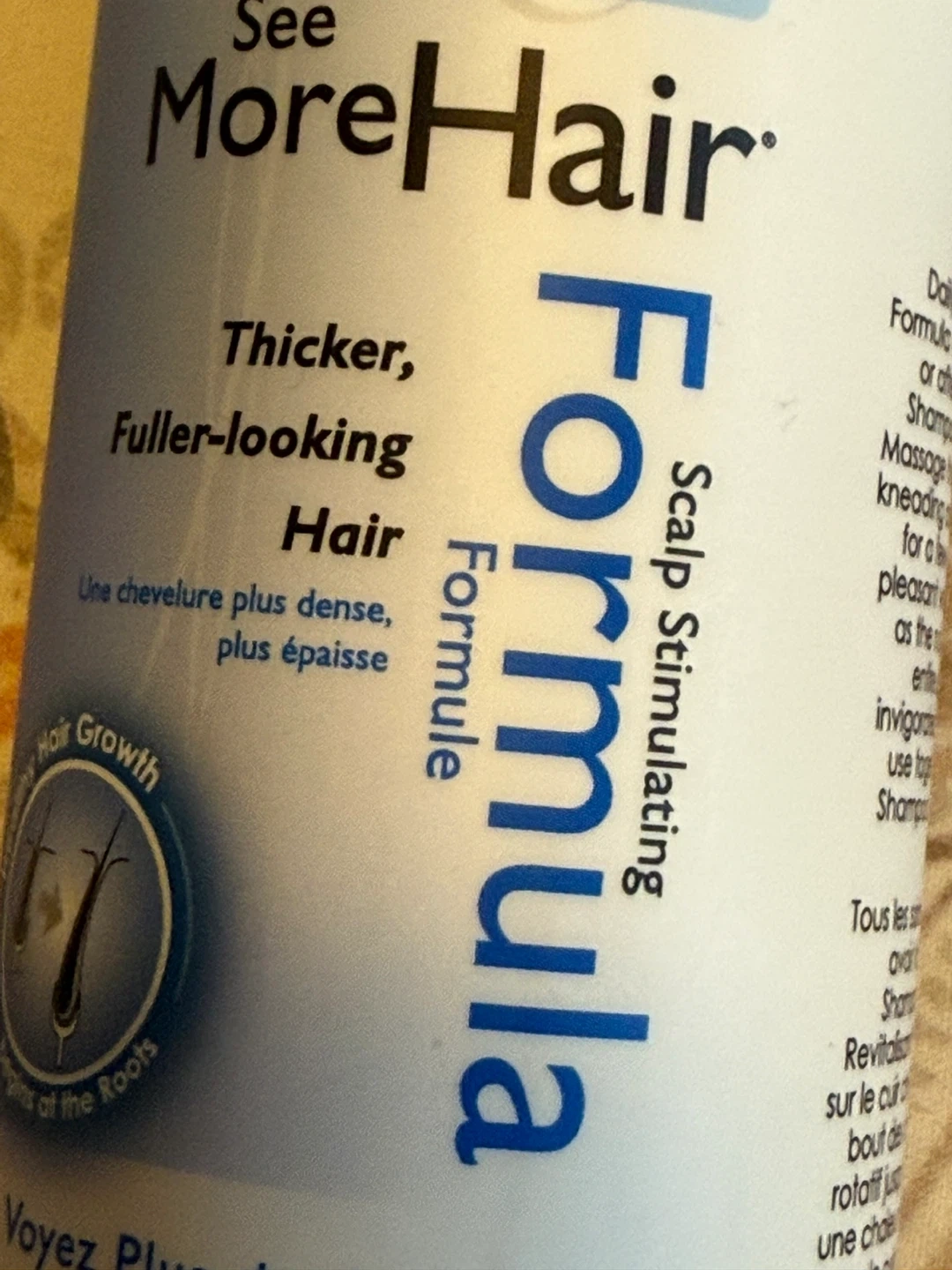 bottle of Herbal Glo See MoreHair Scalp Stimulating Formula. It's designed to help you achieve thicker, fuller-looking hair! This formula contains a blend of organic botanical extracts, proteins, and vitamins. Apply daily to your scalp, massaging thoroughly, for a pleasant warm and stimulating tingle as the nutrients are absorbed. Bought from healthy planet health food store. Brand new. Never used.