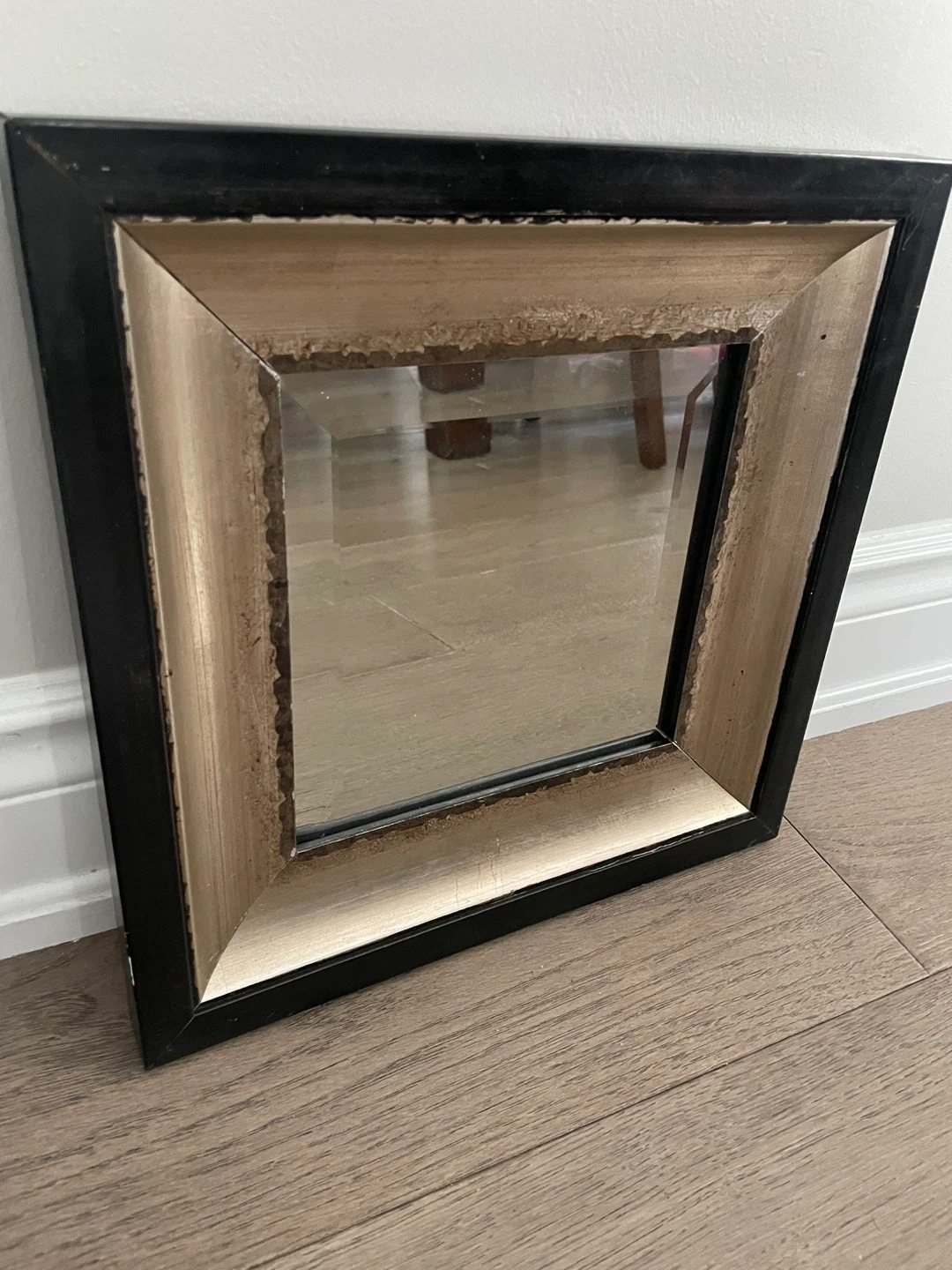 Gorgeous rustic mirror in black & silver - distressed wood look inner layer and a smooth black outer edge