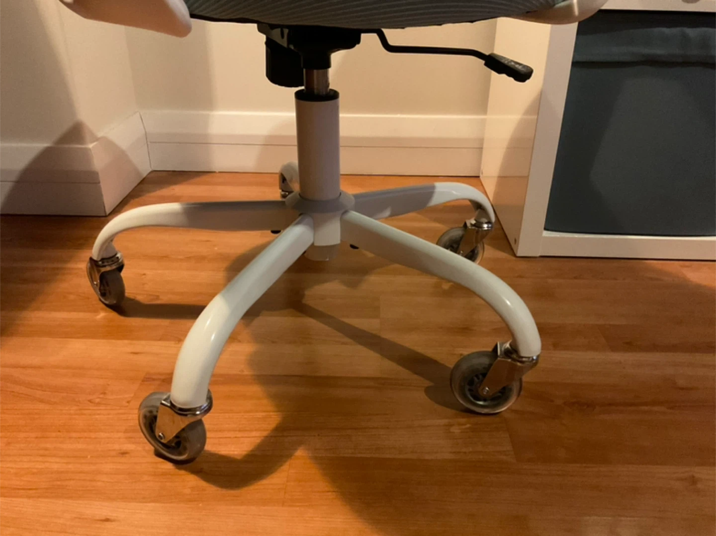 Upgraded rubber clear silver wheels for hardwood flooring.