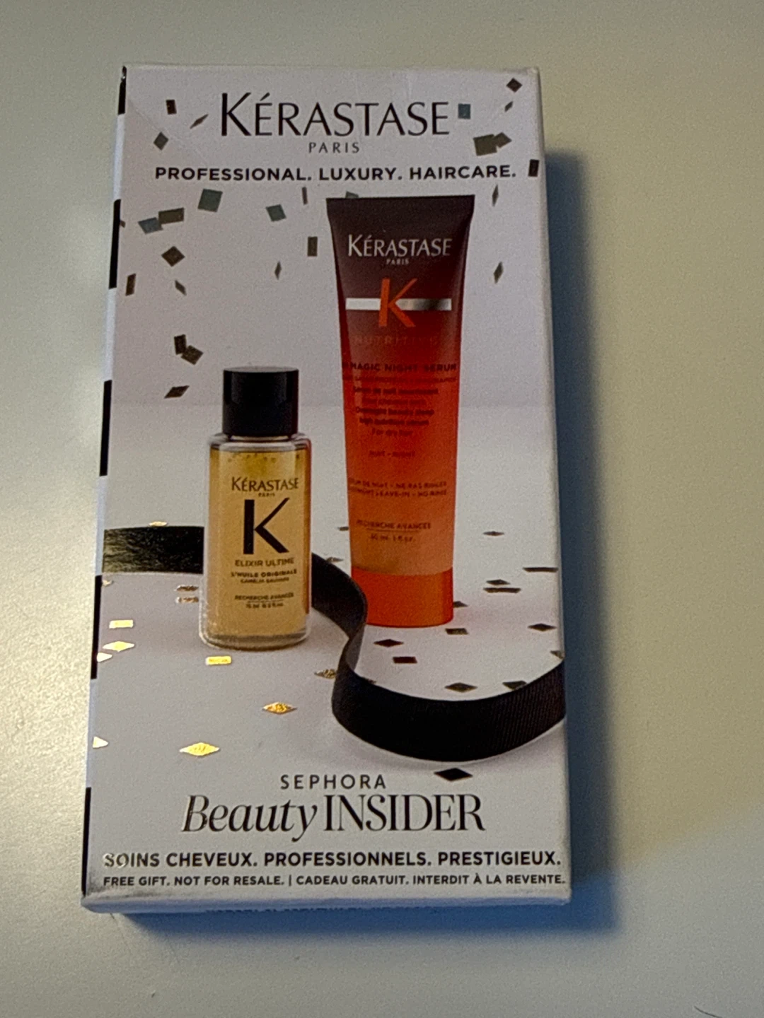 10 sets in total, each 5$This Kérastase set includes the Elixir Ultime oil and Magic Night Serum for your hair. It's a Sephora Beauty Insider free gift, so it says 'not for resale' on the packaging, but it's a great way to try these luxury haircare products! Perfect for anyone looking to add some shine and nourishment to their hair routine