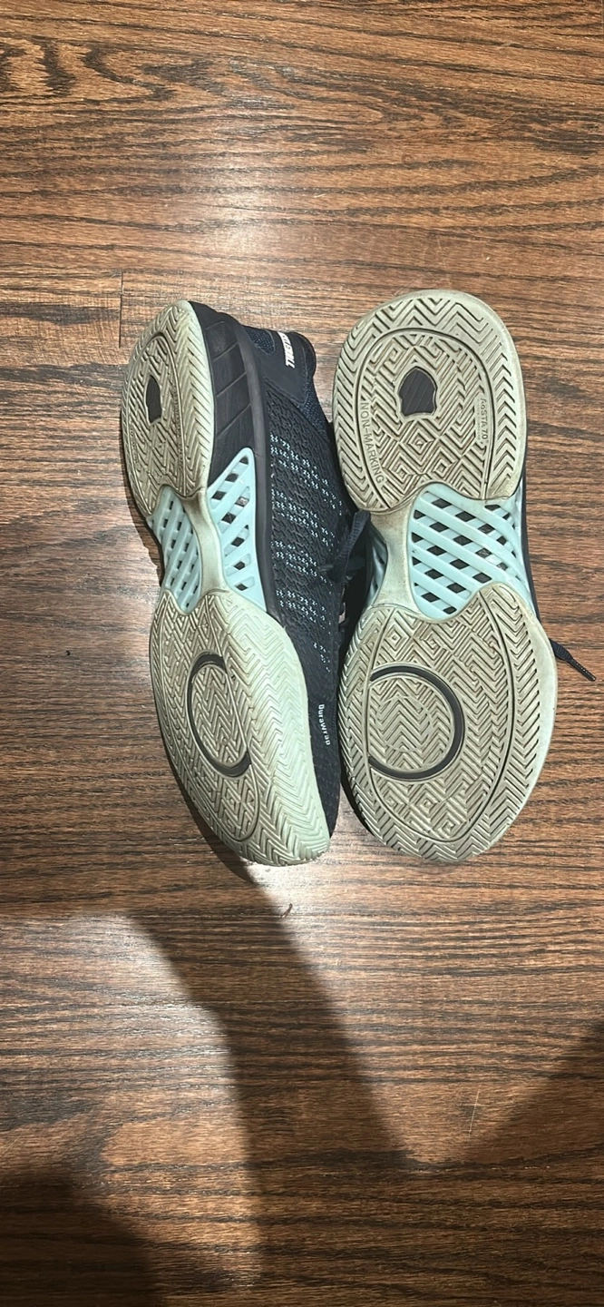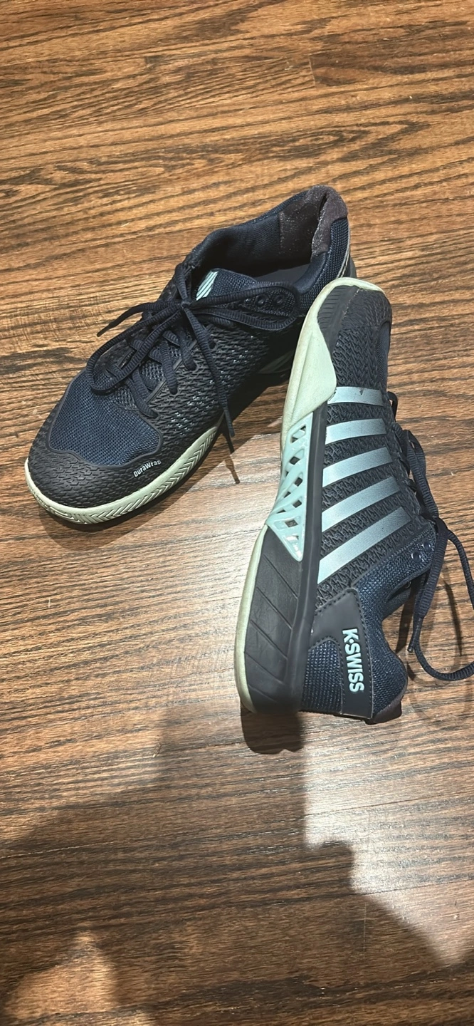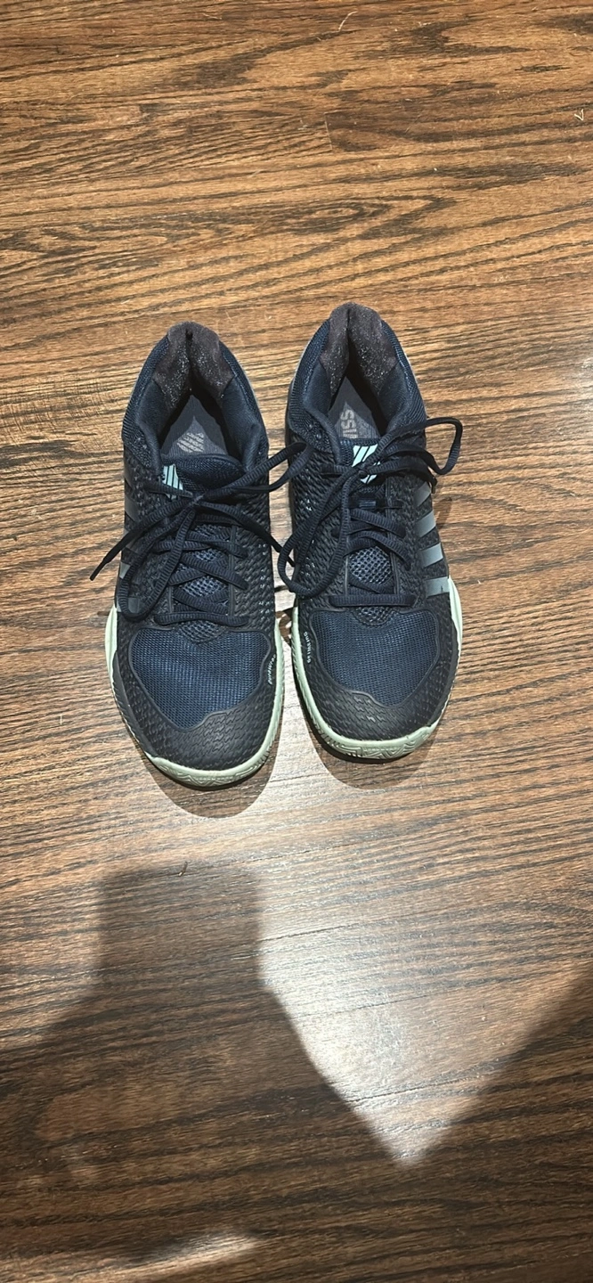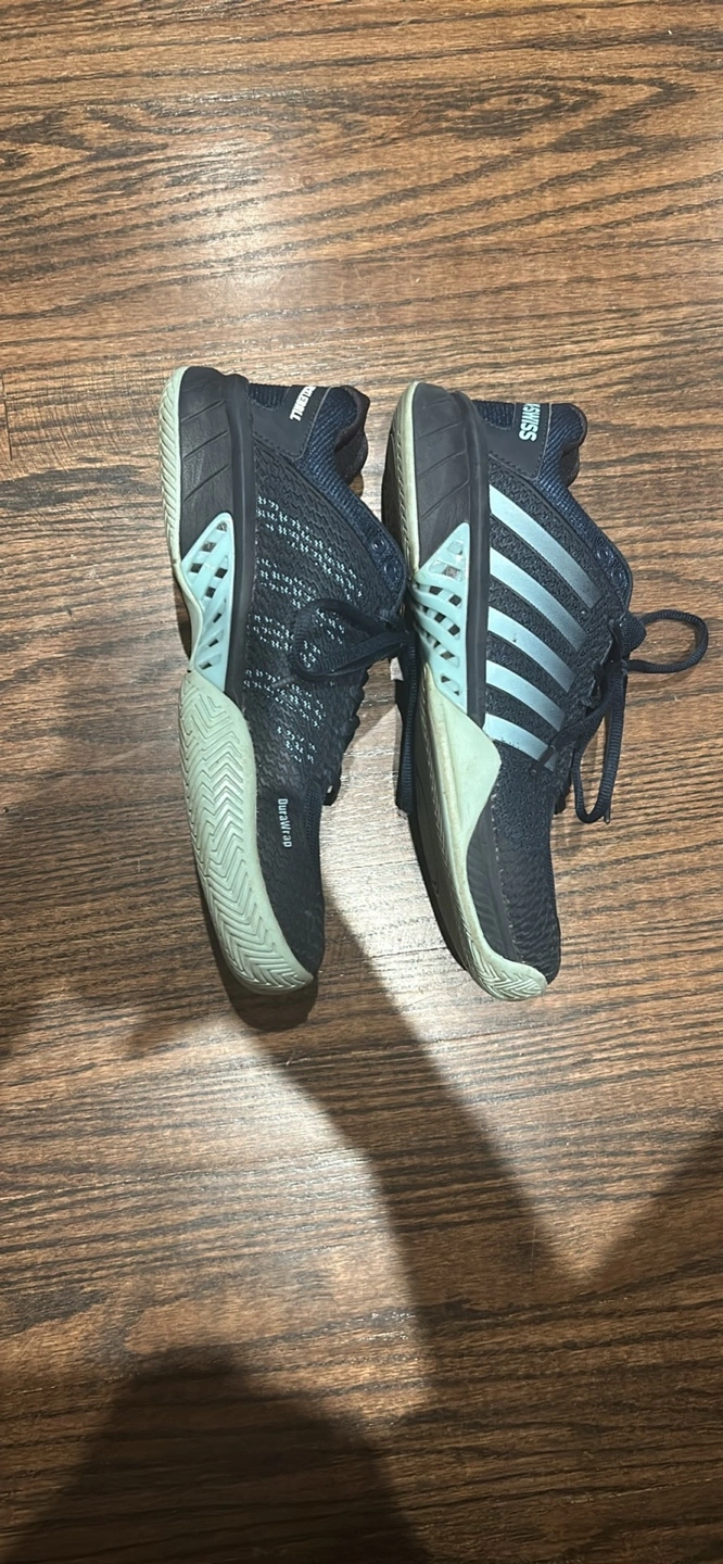 Selling a pair of K-Swiss Ultrashot 3 tennis shoes in size 9.5. Used but in good condition- no single damage. Once washed, will be as new as brand-new. Great for tennis, pickleball casual wear!