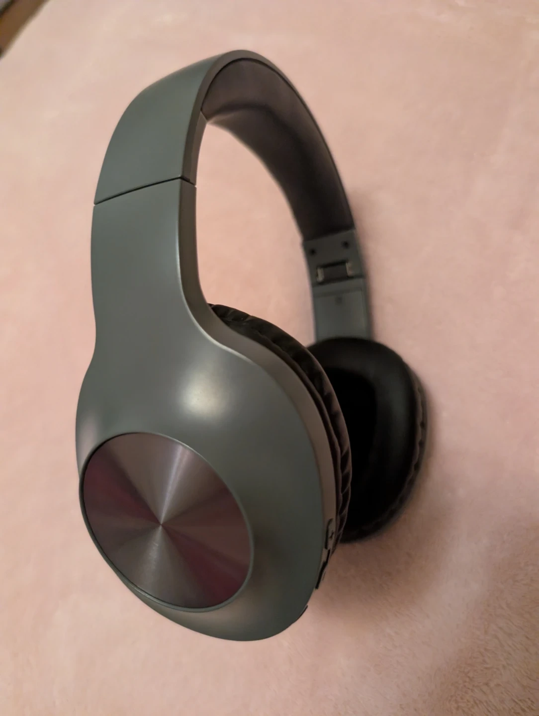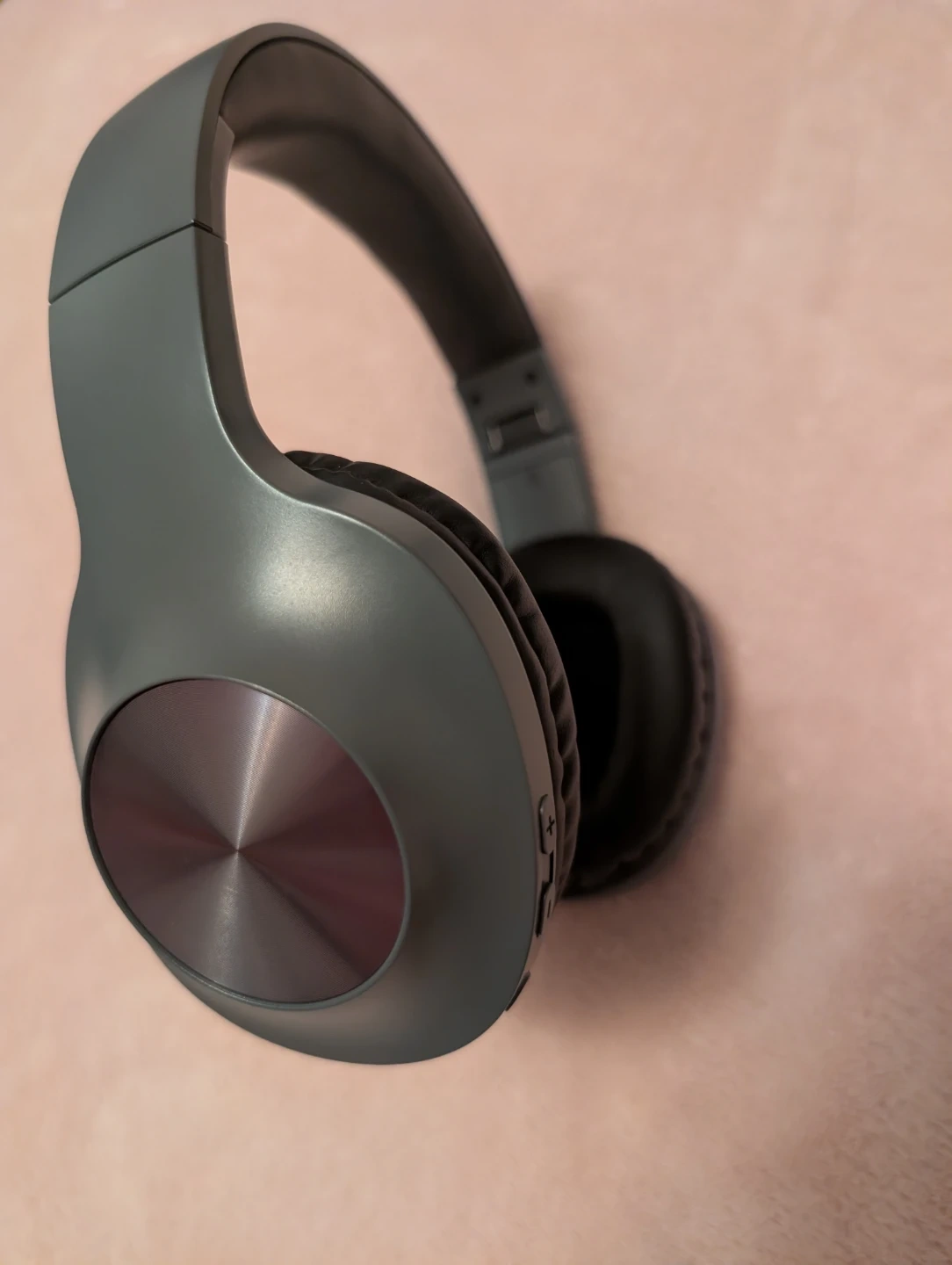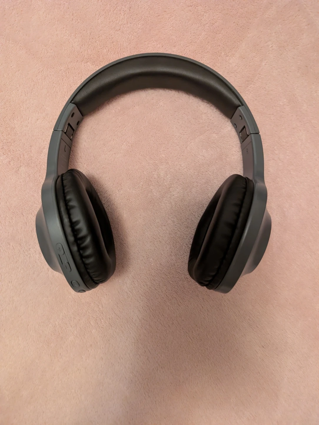 LETSCOM wireless over-ear headphones in a nice grey colour. They come with a soft protective pouch for storage. Great for listening to music or podcasts on the go!