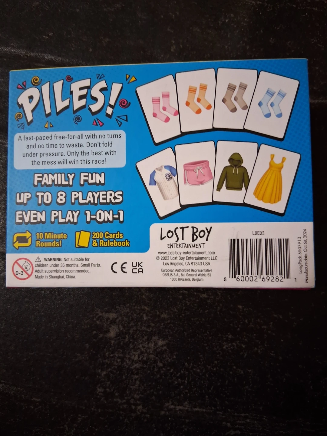 Piles! is a fast-paced card game for 2-8 players, perfect for family fun. It includes 200 cards and a rulebook. This game takes about 10 minutes to play and is suitable for ages 8 and up.
