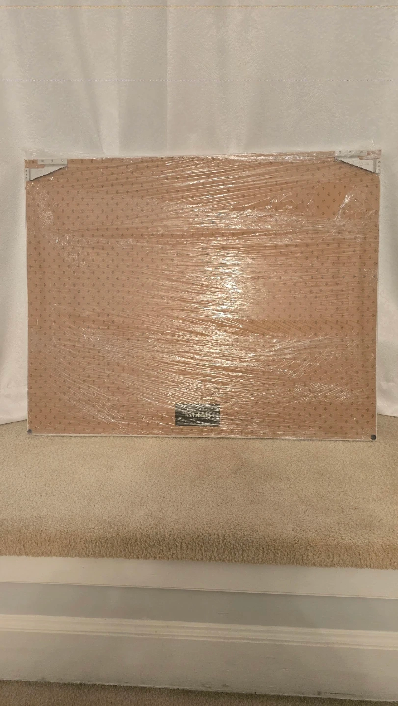 Selling a framed leopard print from Framebridge. It's in great condition and ready to hang in your home. The frame is a clean white color that complements the black and white print perfectly. Adds a touch of wild elegance to any room!