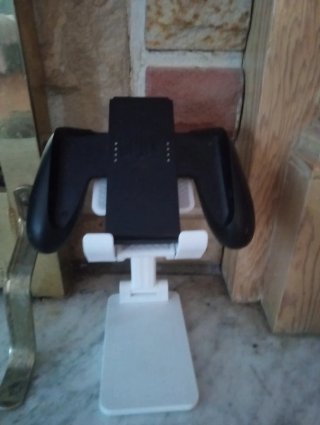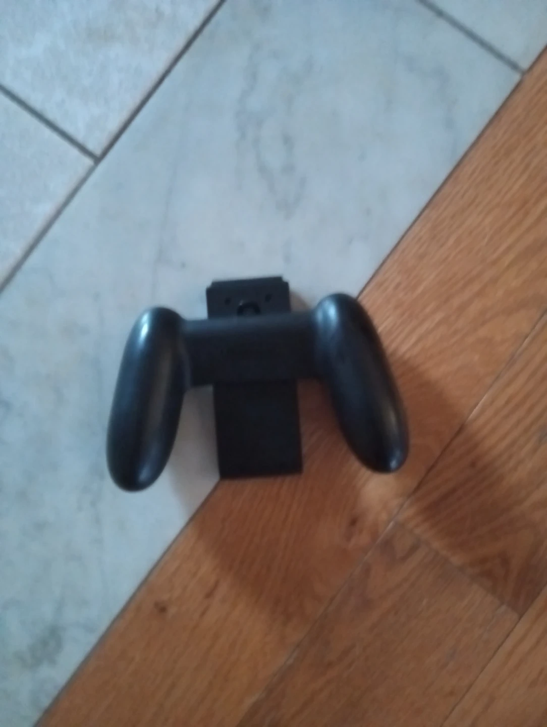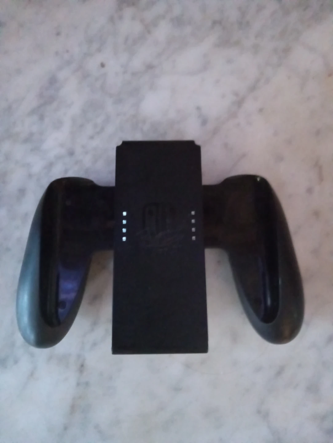 This is a charging grip for Nintendo Switch Joy-Cons. It allows you to charge your Joy-Cons while playing. It's a black plastic accessory.
