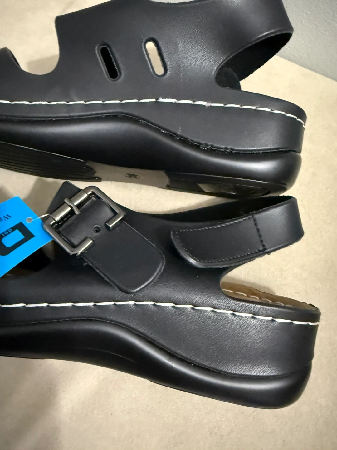 *Brand new, tags on! These women’s black Del Garda (DG) sandals are designed for comfort and durability. They feature adjustable buckle straps and a water-resistant build. Heel rise is 2”.