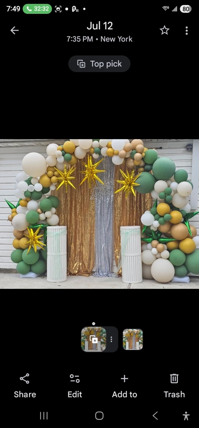Two elegant glass centerpieces filled with faux white and green flowers and decorative accents. They feature beaded details and gold accents on the bases. Perfect for adding a touch of class to any event!