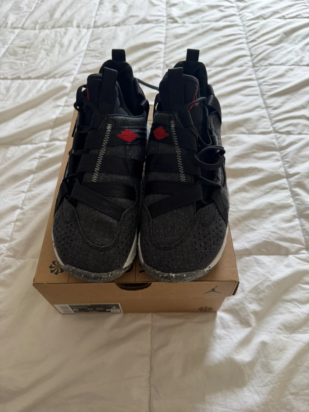 Jordan Crater shoes in black and university red. Size 6 UK (24 cm). Includes original box.