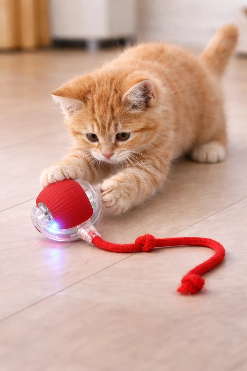 The toy automatically rolls and moves while the teaser tail encourages cats to chase, pounce, and play. It’s perfect for indoor cats that need extra exercise and stimulation.