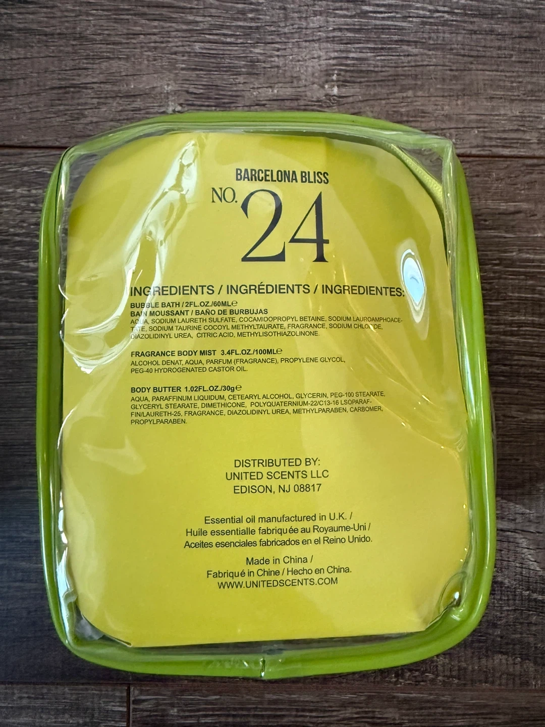 This Barcelona Bliss No. 24 set includes bubble bath, body butter, and fragrance body mist. The bubble bath is 2fl.oz/30mL and the fragrance body mist is 3.4fl.oz/100mL. Body butter is 1.02fl.oz/30g. Great for travel!