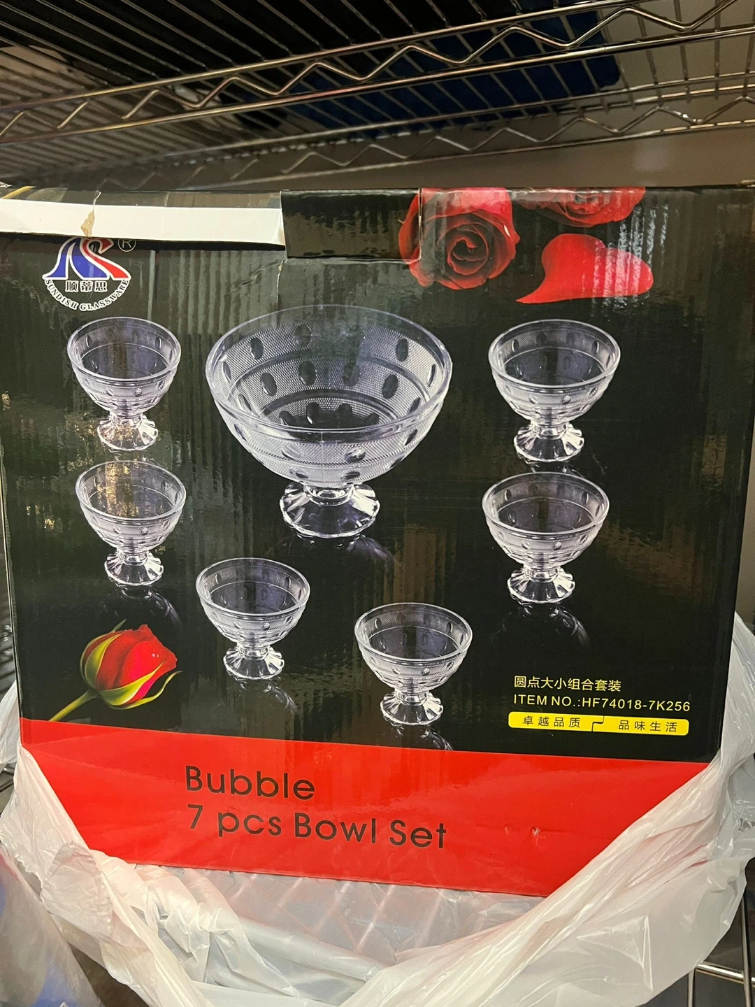 Selling a brand new Bubble 7-piece bowl set, still in its original packaging! This set includes a large bowl and six smaller bowls, perfect for desserts or snacks. The bowls have a lovely textured design that adds a touch of elegance to any table setting