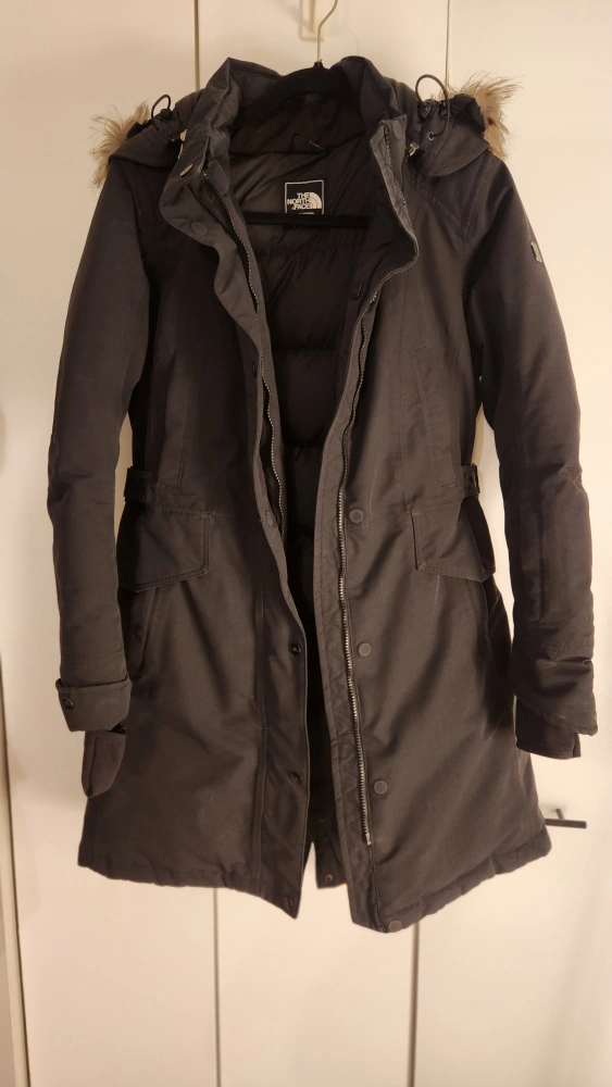 I bought this jacket in 2017 and wore it that year only. I have so many winter jackets. you can see the fur on the hood is fluffy and nice. It's really warm. There are magnetic buttons that just close so you don't need to! also there is a fabric to cover your hands.