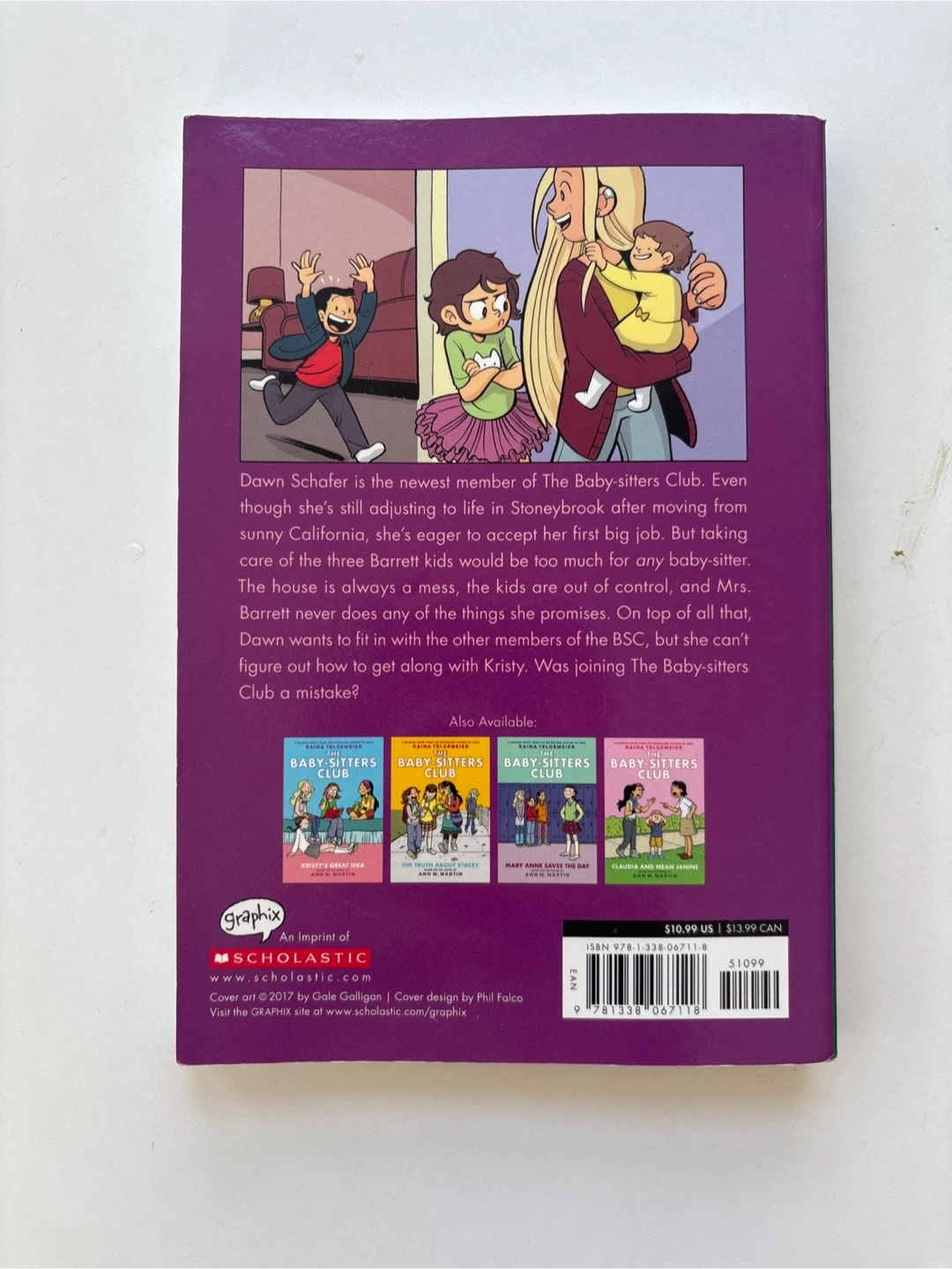 A graphic novel by Gale Galligan based on the novel by Ann M. Martin. This book follows the adventures of Dawn Schafer. It's part of The Baby-Sitters Club series.